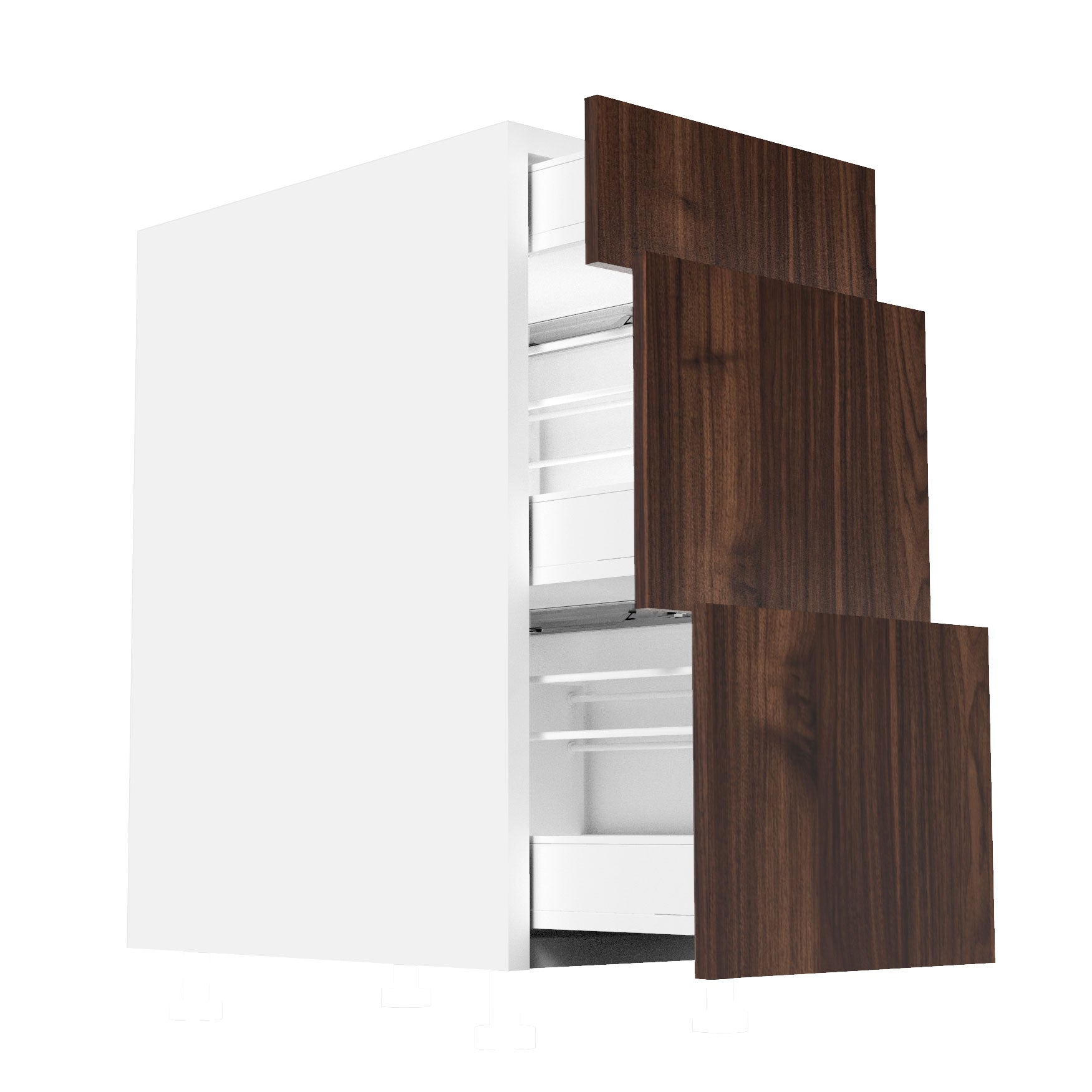 RTA - Walnut - Three Drawer Base Cabinets | 15"W x 34.5"H x 24"D