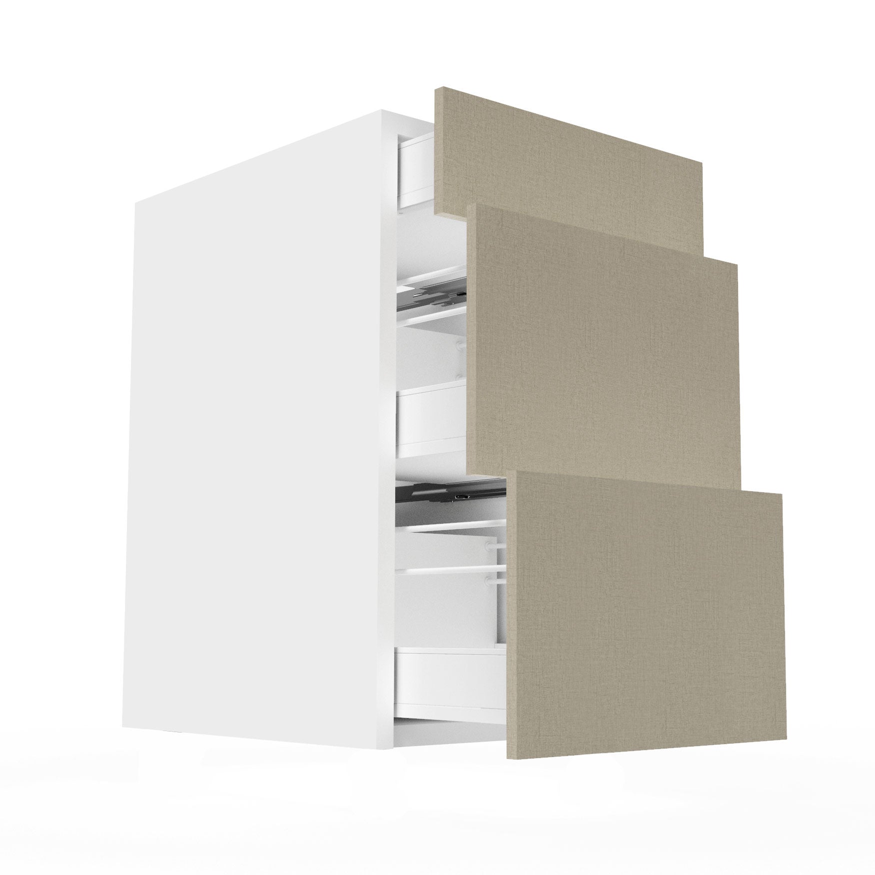 RTA - Fabric Grey - Three Drawer Base Cabinets | 18"W x 34.5"H x 24"D