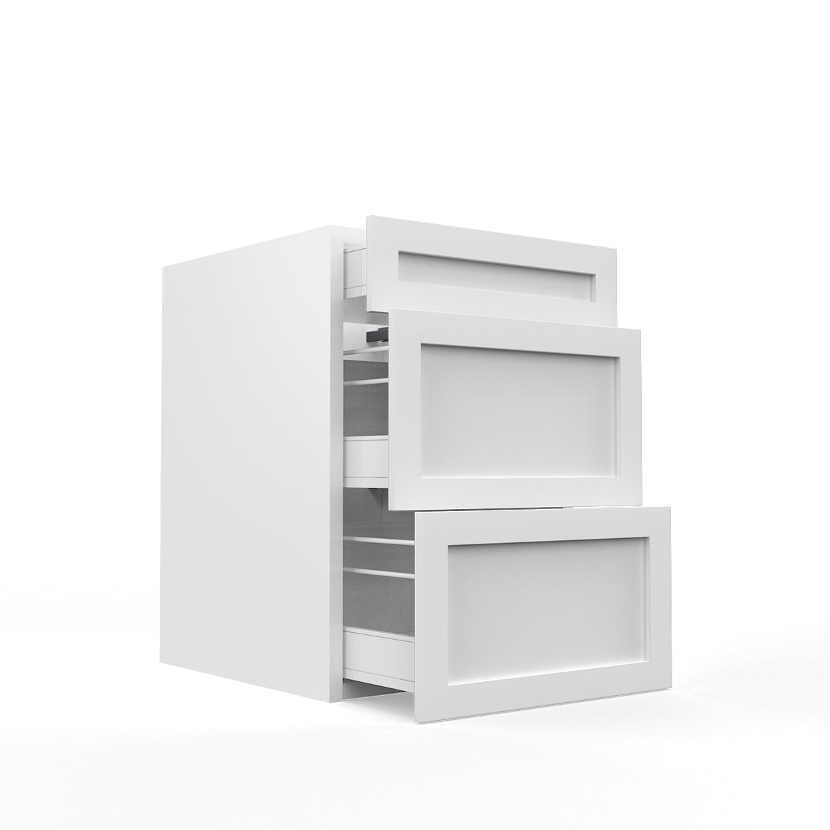 RTA - White Shaker - Three Drawer Base Cabinets | 21"W x 34.5"H x 24"D
