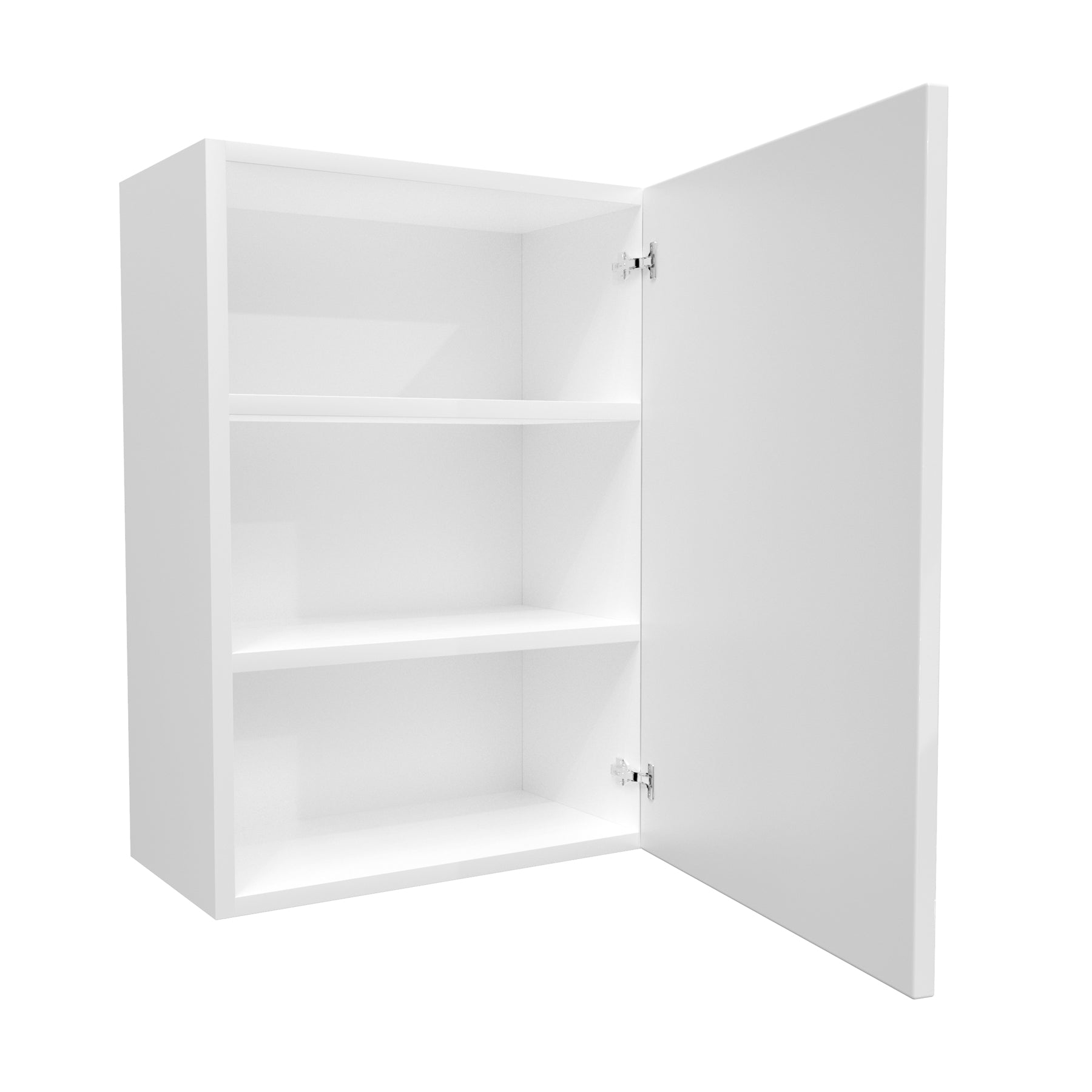 Single Door Wall Cabinet | Milano White | 21W x 30H x 12DThe Milano Collection is composed of 3/4" vinyl laminated plywood with a frame-less box construction. The metal drawers are outfitted with full extension, under-mount drawer glides, as well as the soft-close feature. The adjustable soft close hinges, 3/4" adjustable full-depth plywood shelves, and dowel and glue-clamped assembly construction create a solid, durable framework for your cabinetry. Features:
