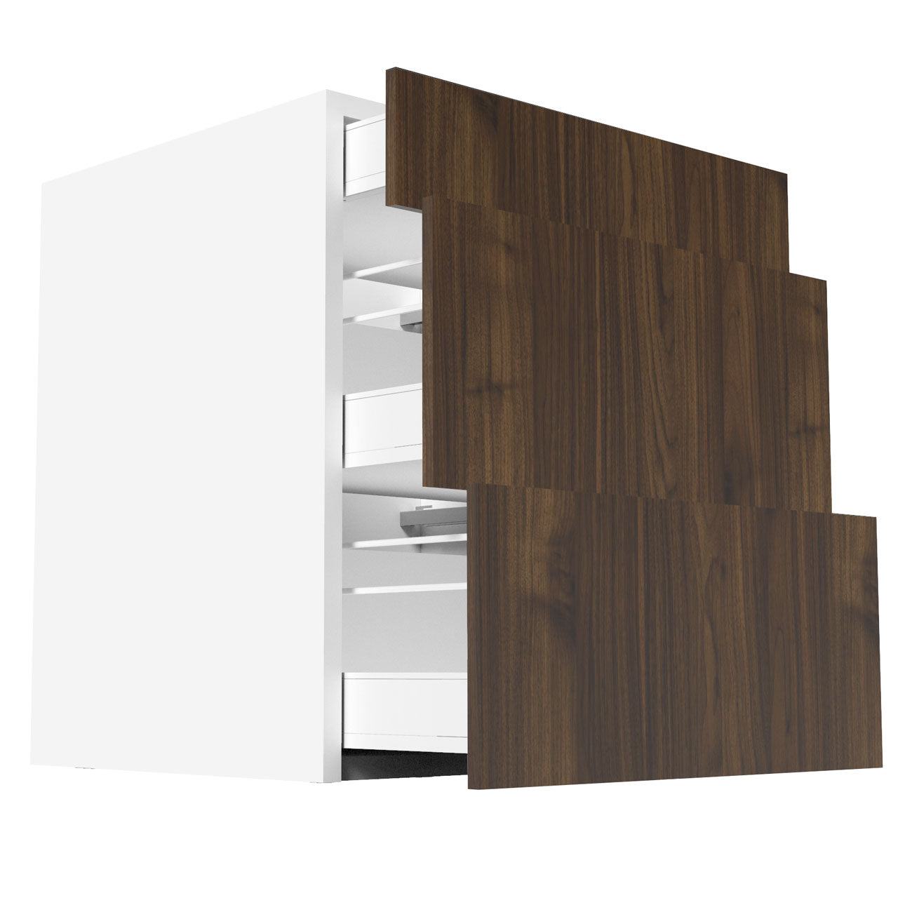 RTA - Walnut - Three Drawer Base Cabinets | 27"W x 34.5"H x 24"D