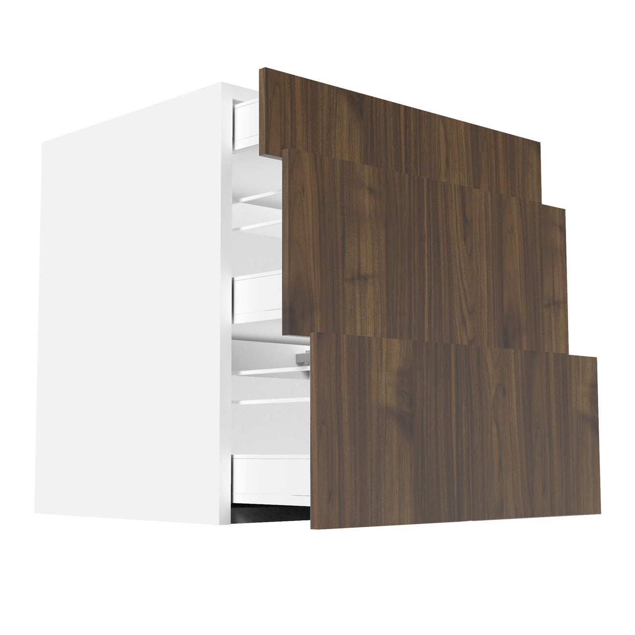 RTA - Walnut - Three Drawer Base Cabinets | 30"W x 34.5"H x 24"D
