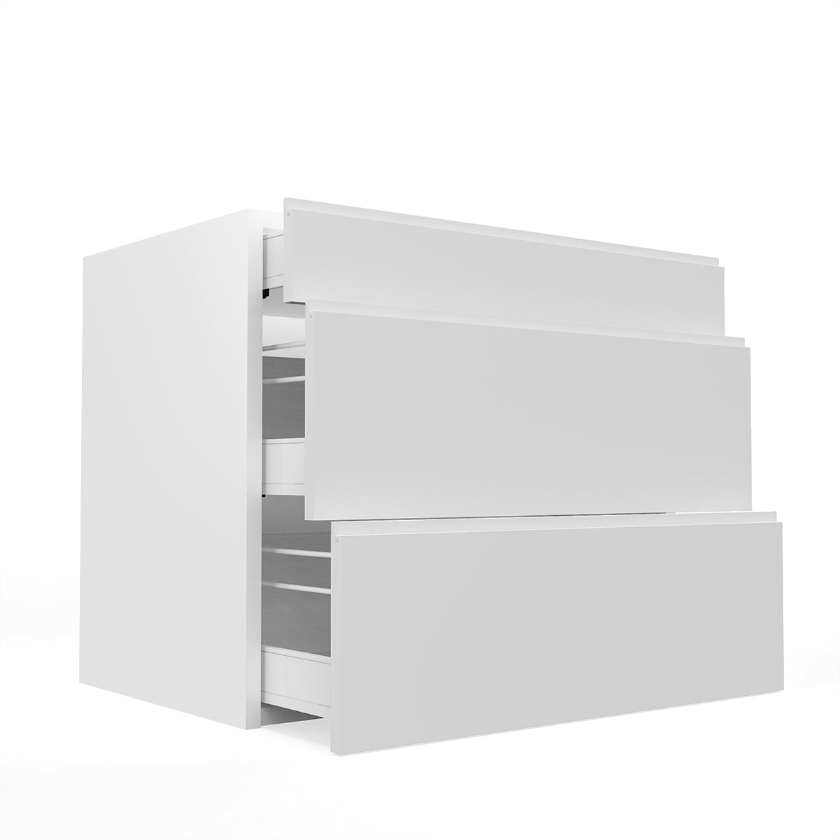 RTA - White Cabinet - Lacquer White - 3 Drawer Base Cabinet | 36"W x 34.5"H x 23.8"D
