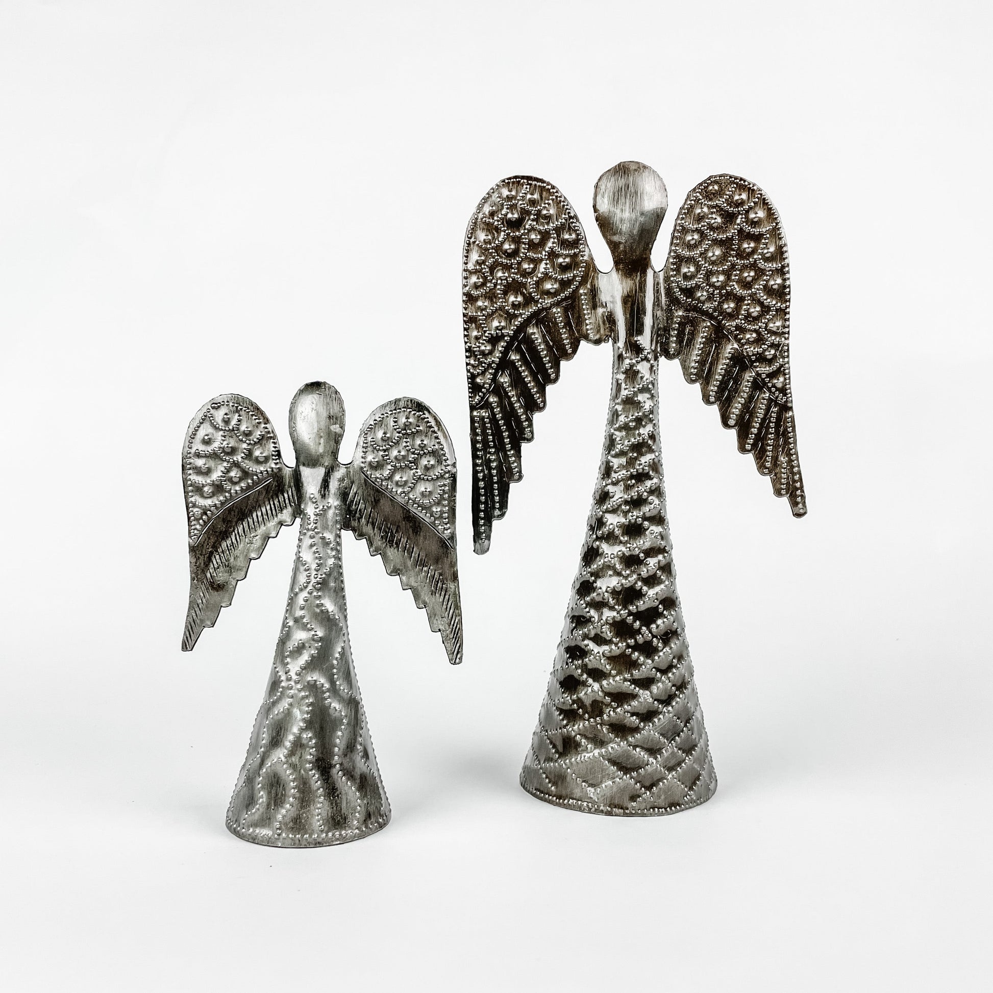 Add an elegant touch to your holiday décor with this beautiful metal angel, handcrafted from 55-gallon oil drums.