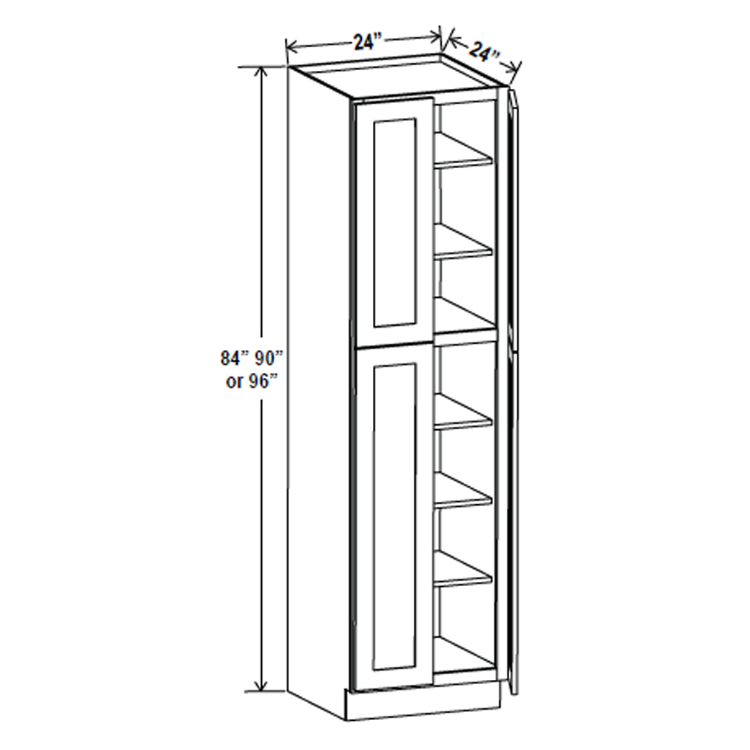 Aria Shaker Espresso - Wall Pantry - 24"W x 84"H x 24"D - 4D, 5SThis cabinet line offers the finest quality cabinets at the lowest possible prices. Door Construction is of Solid Birch Frame & MDF Center; The Box Construction is Solid Wood Frame Plywood Box. Features: