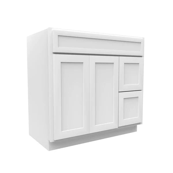 Vanity Sink Base - 36W x 34 1/2 x 21D - 1D, 2 Right DRW - Aria White Shaker - RTA