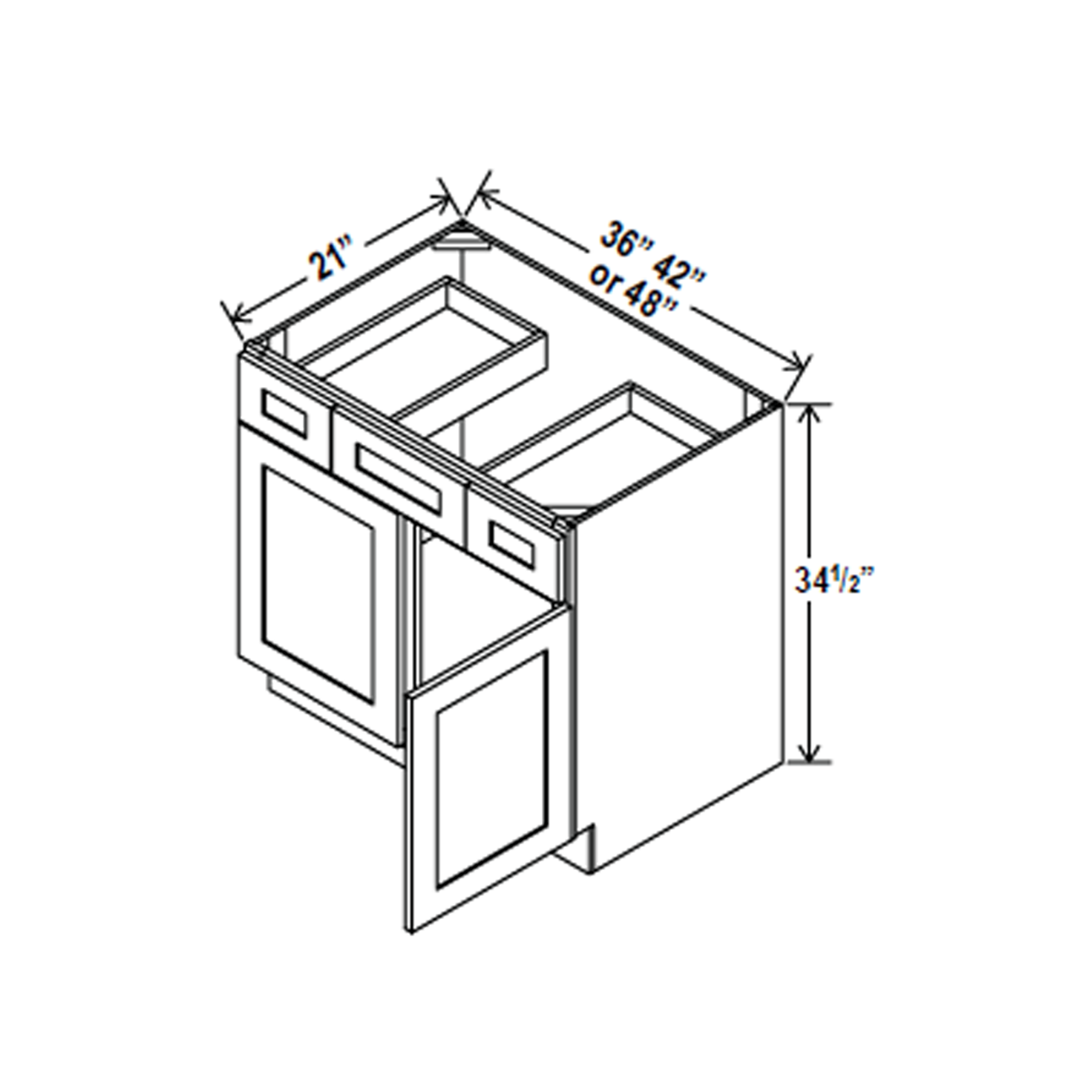 Aria Shaker White - Vanity Sink Drawer Base Cabinet - 48"W x 34 1/2"H x 21"D - 2 DRW, 2DThis cabinet line offers the finest quality cabinets at the lowest possible prices. Door Construction is of Solid Birch Frame & MDF Center; The Box Construction is Solid Wood Frame Plywood Box. Features:
