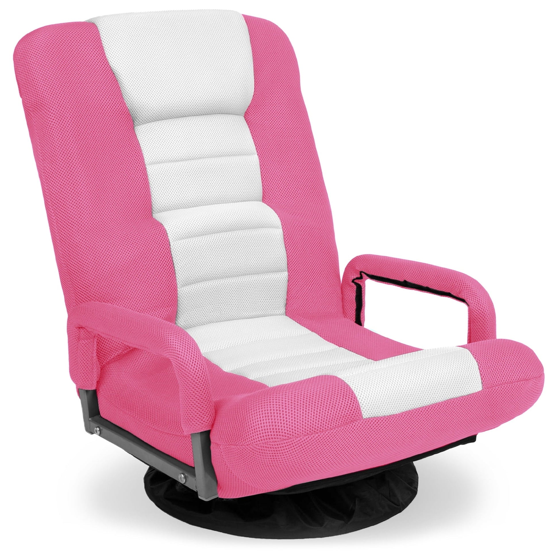 Best Choice Products 360-Degree Swivel Gaming Floor Chair w/ Armrest Handles, Foldable Adjustable Backrest - Pink/White