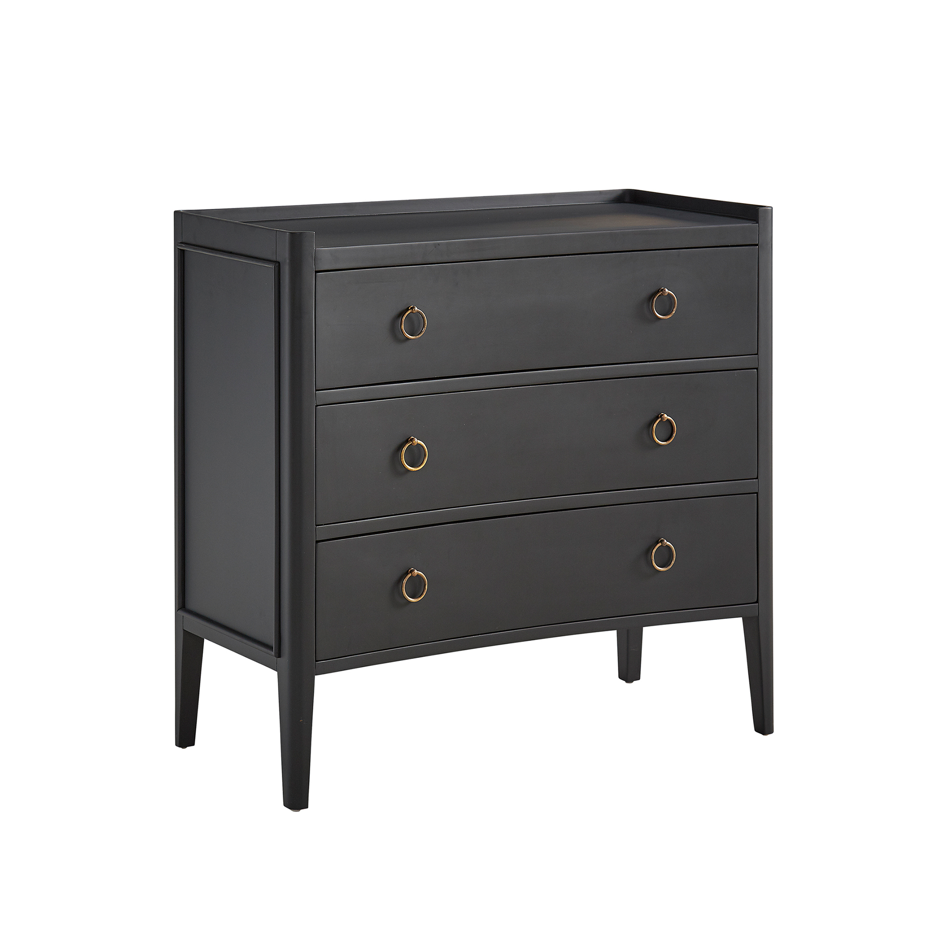 Add a dose of dark elegance to any space with our concave 3-drawer dresser. This mahogany beauty is crafted with curved front drawers, antique bronze ring pulls, and gorgeous gallery detail.