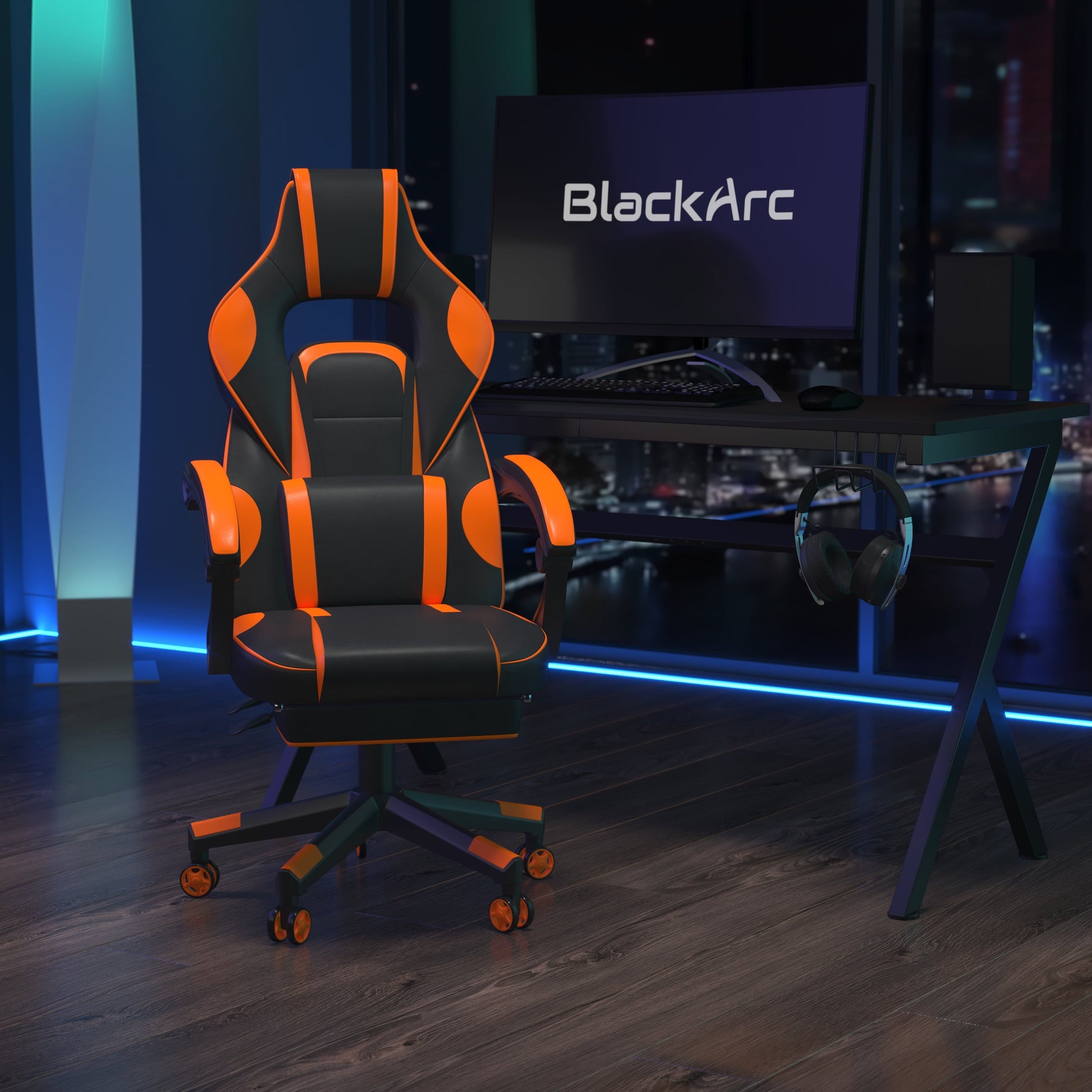 BlackArc Gaming Chair Outfitted With Footrest, Headrest, Lumbar Support Massage Pillow, Reclining Seat/Arms In Black & Orange