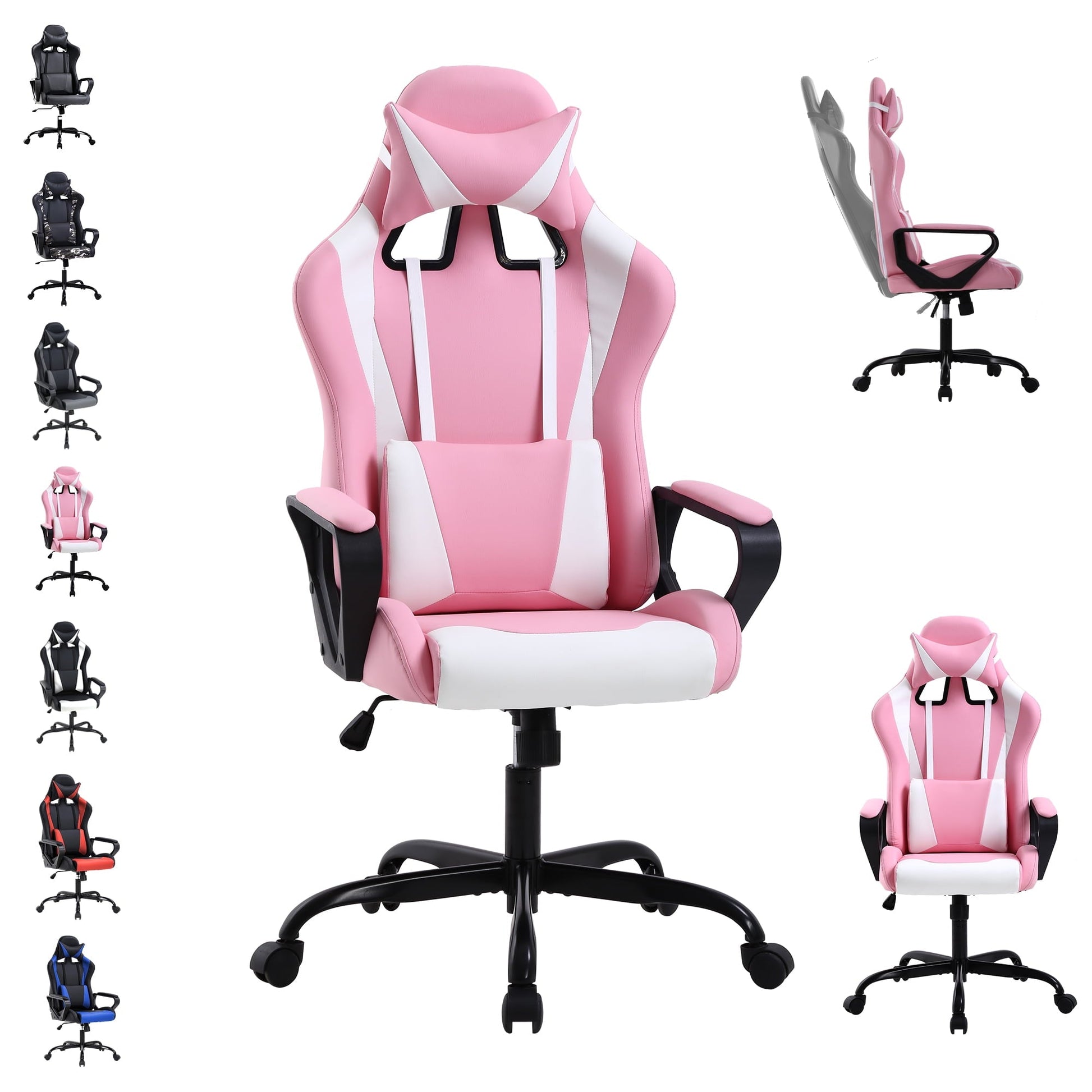 CL.HPAHKL PC Gaming Chair, Office Chair High Back PU Leather Ergonomic Computer Chair with Headrest and Lumbar Support, Height Adjustable Video Game Chair Gaming Chair for Adults, Pink