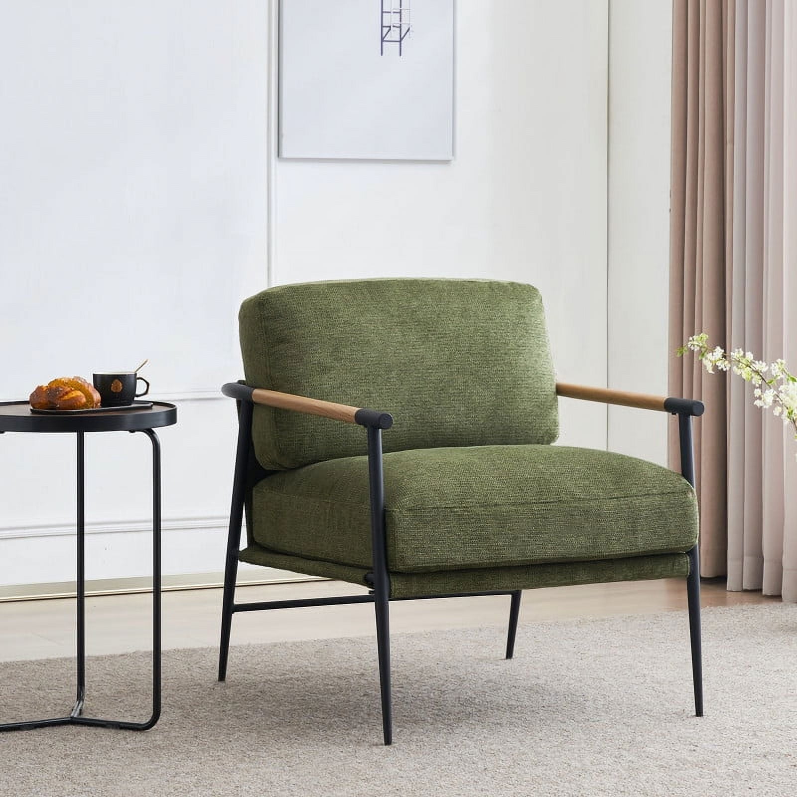 Comfort Stretch Accent Chair Armchair Mid Century Modern Chair for Living Room,Reading Room,Bedroom with Metal Leg,Upholstered Fabric Foam Cushion Green,26' Seat Width,19.3 Seat Height,19' Seat Depth