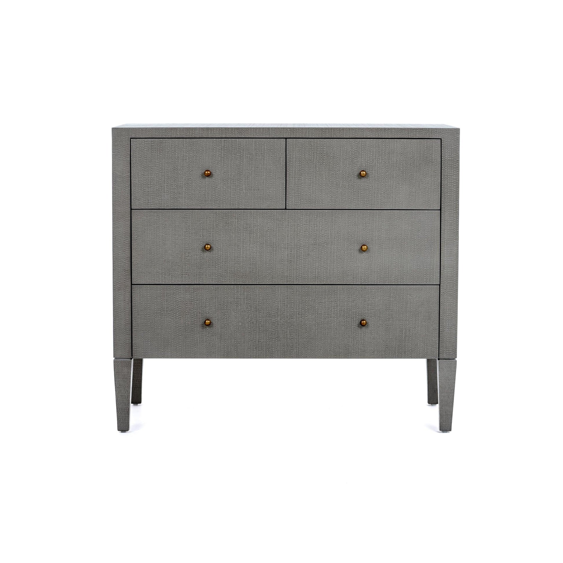 The drawers of the Conrad Dresser provide plenty of storage for organizing your belongings. Finished in a raffia texture with antique brass knobs, this dresser is one of our favorite pieces.