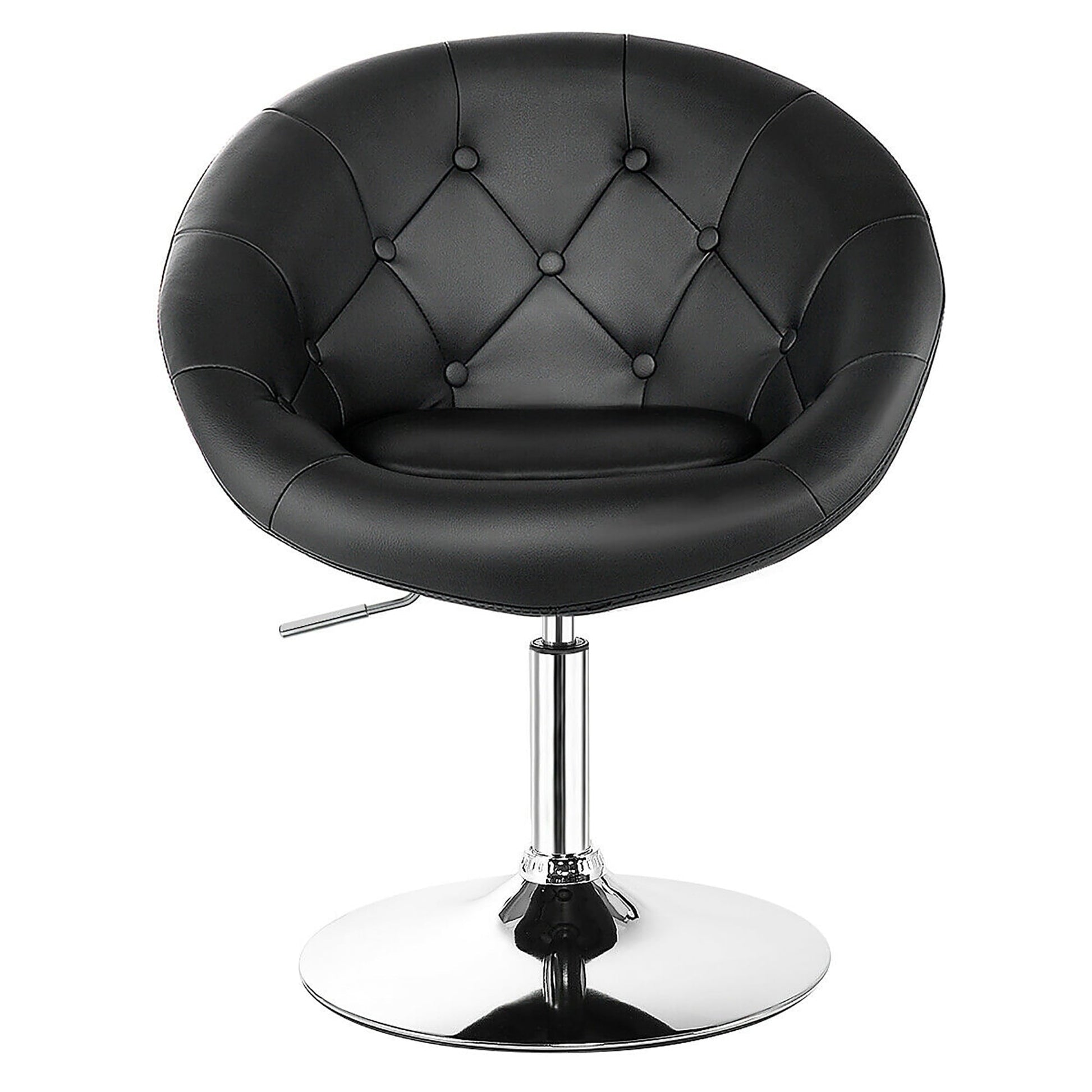 Costway 1PC Accent Chair Adjustable Modern Swivel Round Tufted Back PU Leather Black
