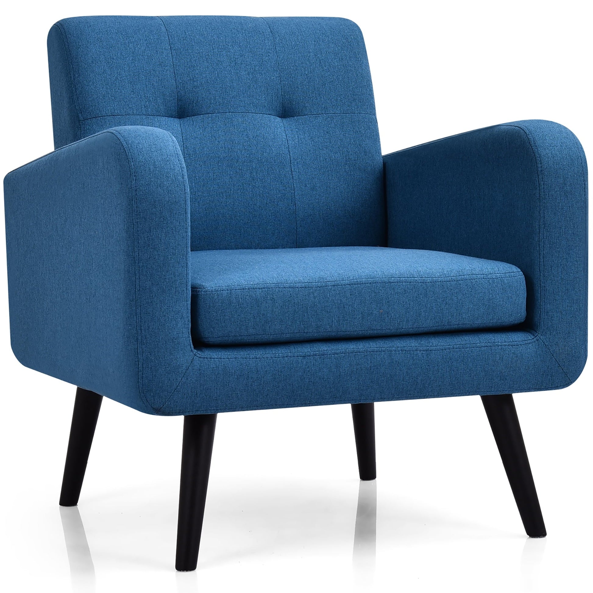 Costway Mid Century Accent Chair Fabric Arm Chair Single Sofa w/Rubber Wood Legs Blue