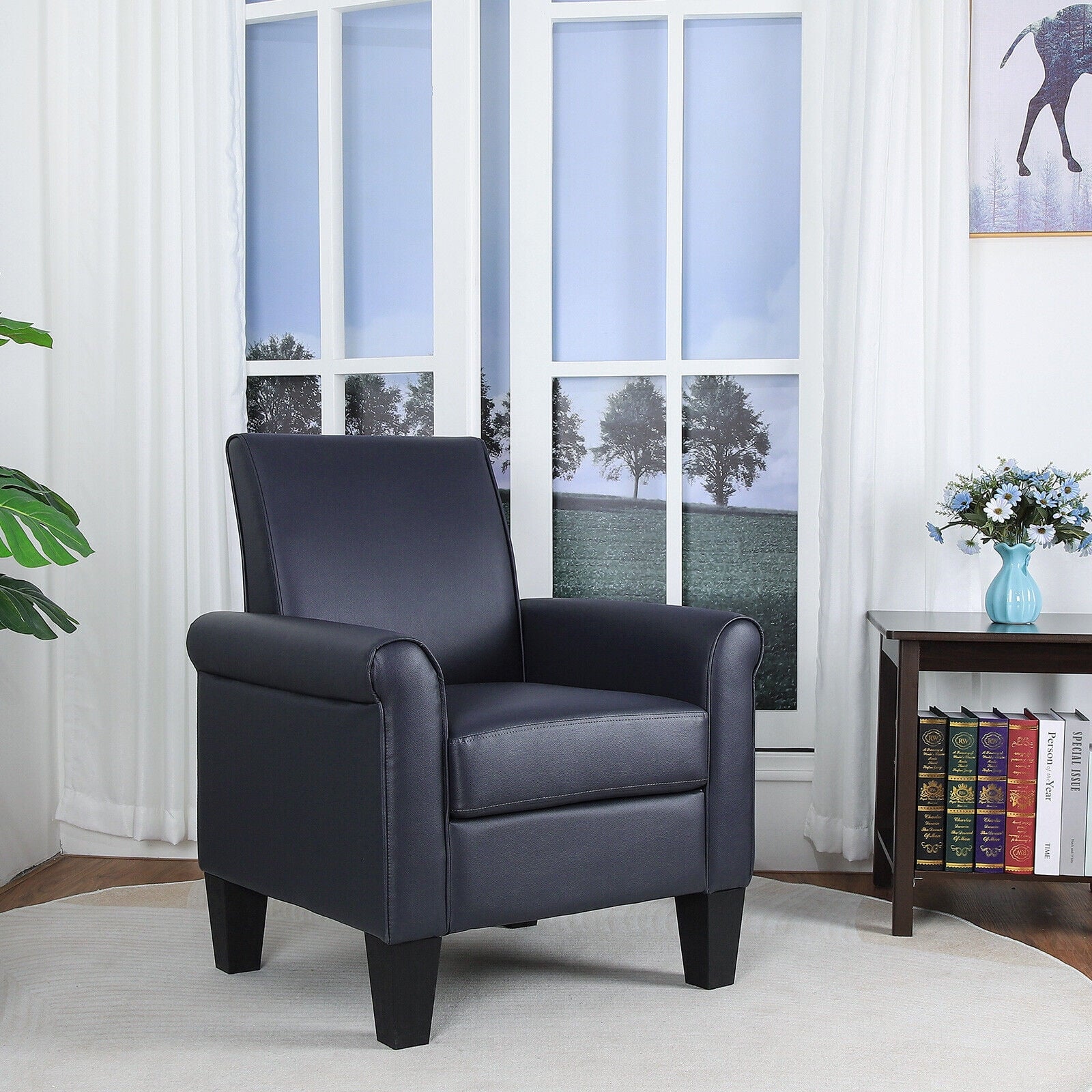 Dazone Accent Leather Arm Chair, Modern Faux Leather Single Sofa Seat Club Chair Armchair For Living Room, Navy Blue