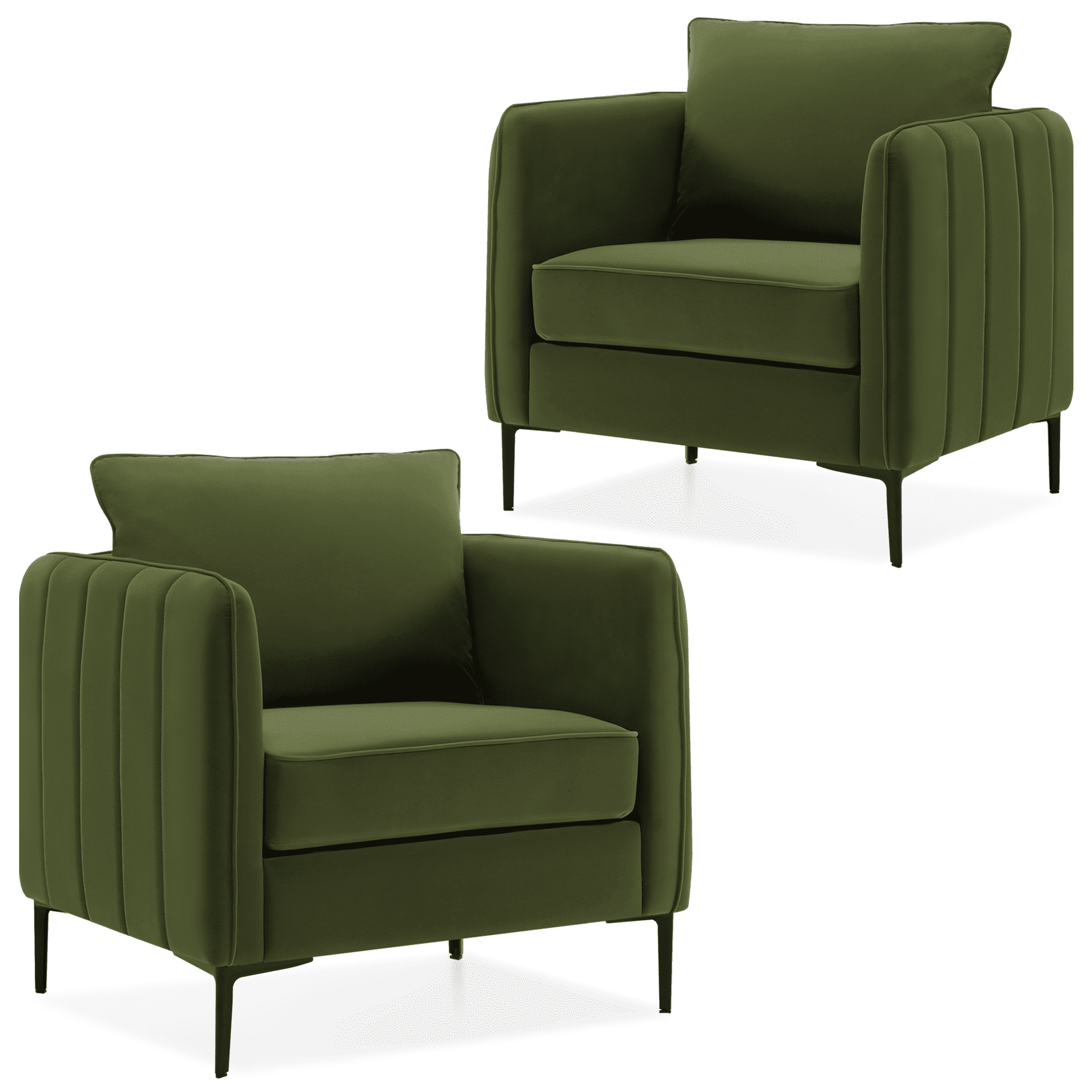 DecoraFlex Olive Green Accent Chairs set of 2,Comfy Velvet Armchair with Thick Cushion, Single Sofa/Side Chair for Living RoomBedroom Office Reading Chair