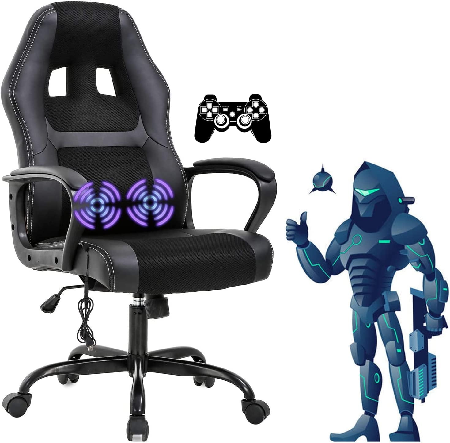 Dkelincs Gaming Chair Massage Computer Chair Ergonomic Video Game Chairs, Adjustable Office Desk Chair with Lumbar Support & Armrest for Teens & Children, Black