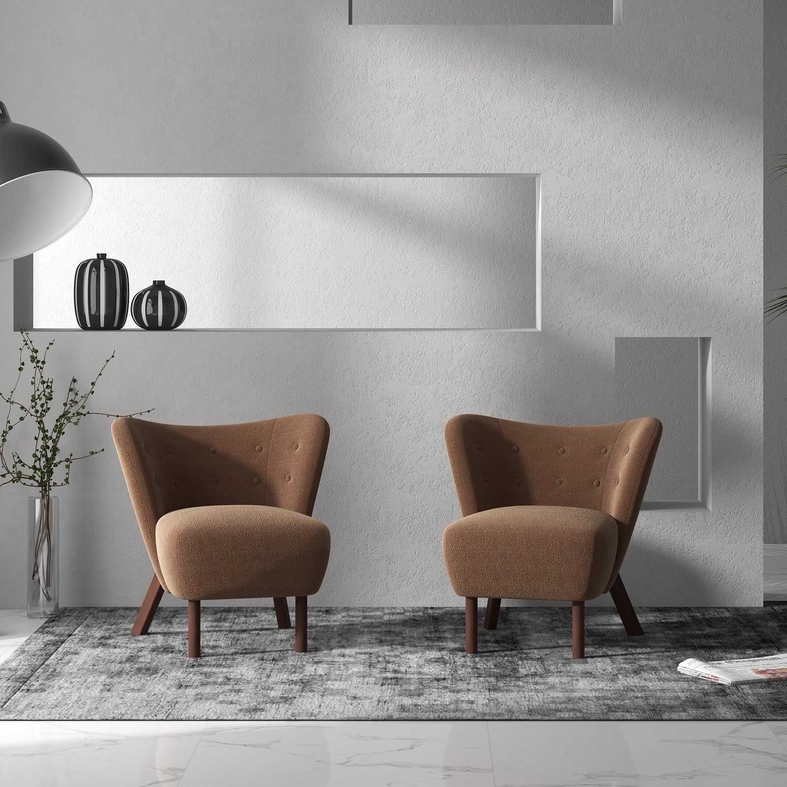 Ebello 34' Wide Adult Teddy Solid Color Tufted Wingback Chair with Solid Wood Leg, Brown (Set of 2)