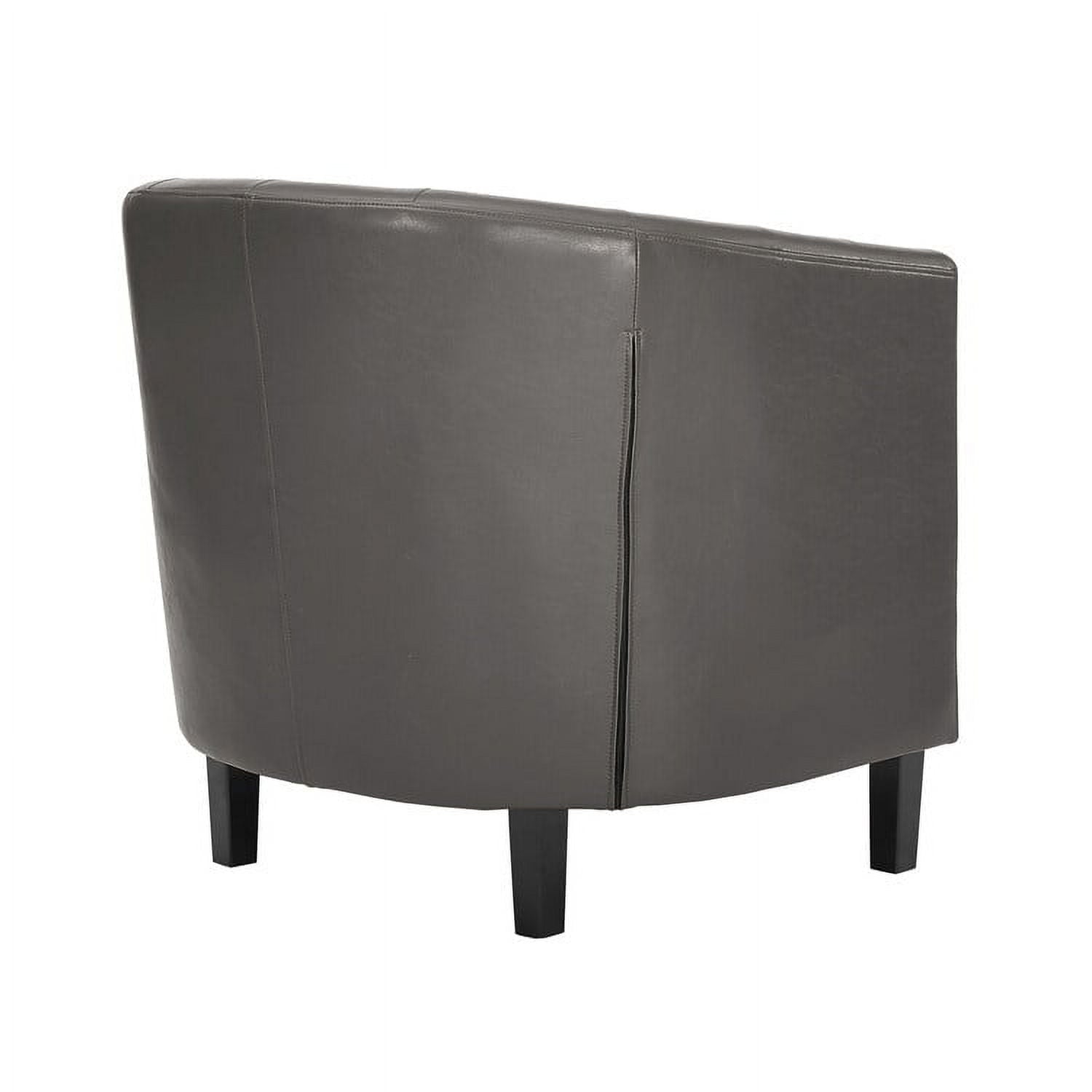 - PREMIUM BUTTON TUFTED FAUX LEATHER FINISH: With a Signature Diamond Button Tufted Soft Faux Leather Fabric, Wooden Legs, Detailed Stitching and Tub Barrel Design, this Comfy accent chair creates a soft, elegant look. The Gray Accent Chair for living room creates a most stunning accent piece of furniture in your room.