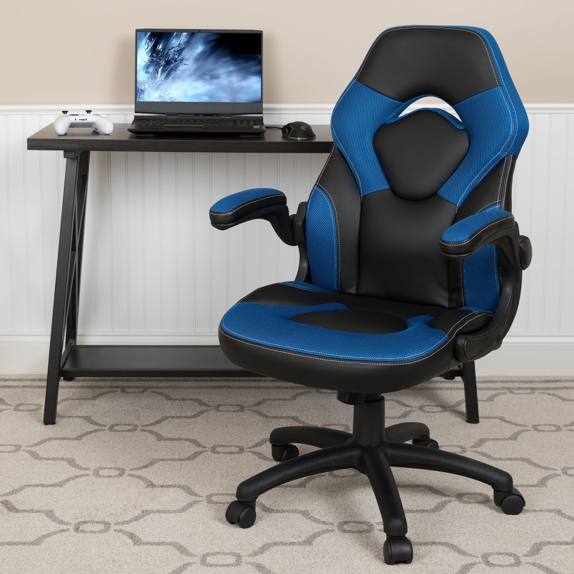 Flash Furniture X10 Gaming Chair Racing Office Ergonomic Computer PC Adjustable Swivel Chair with Flip-up Arms, Blue/Black LeatherSoft