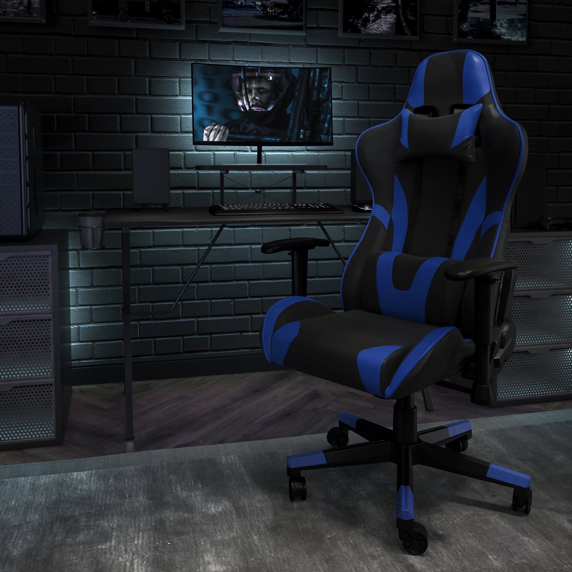 Flash Furniture X20 Gaming Chair Racing Office Ergonomic Computer PC Adjustable Swivel Chair with Reclining Back in Blue LeatherSoft