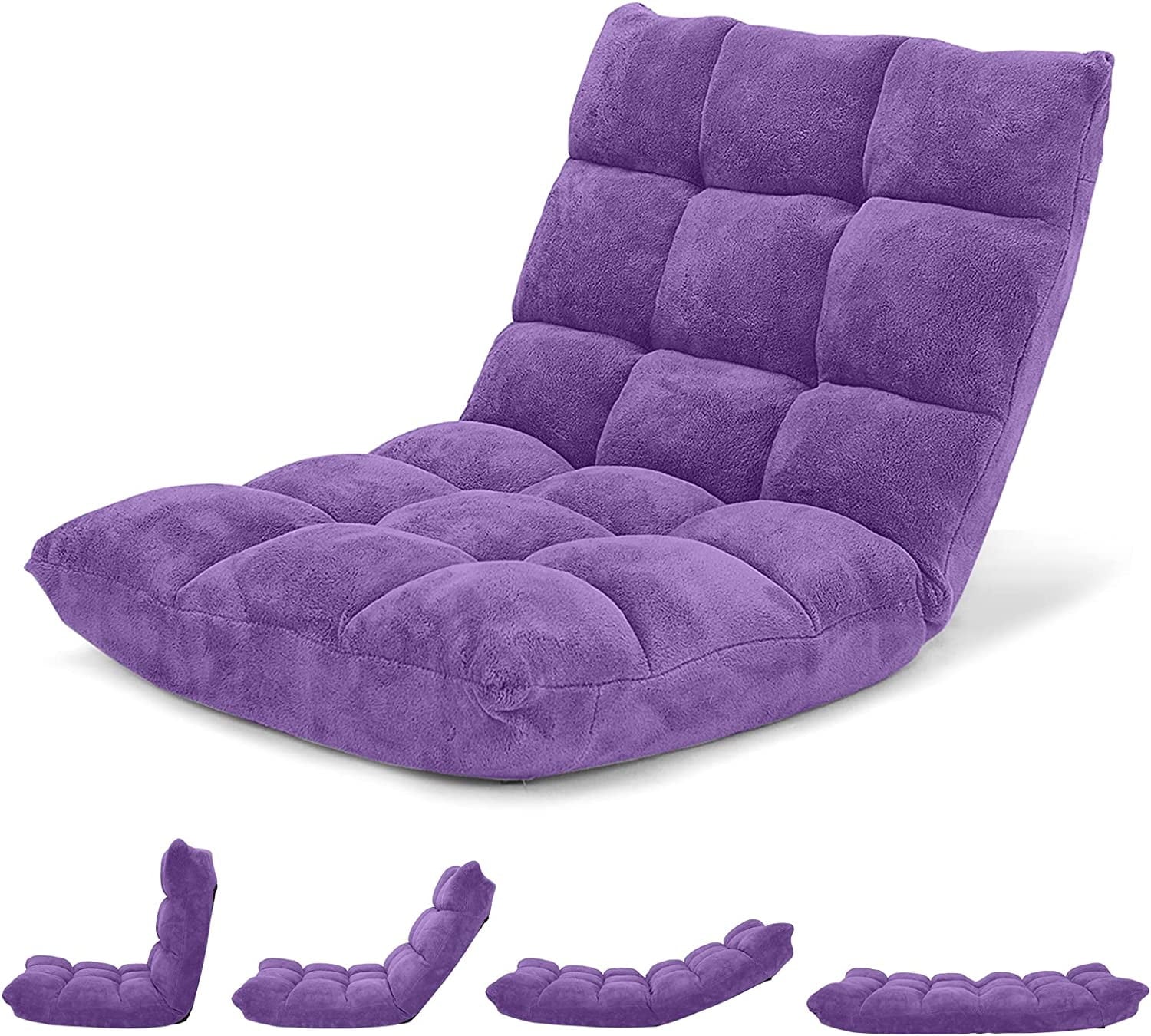 Floor Chair with Back Support, Folding Sofa Chair with 14 Adjustable Position, Padded Sleeper Bed, Couch Recliner, Floor Gaming Chair, Meditation Chair, Gaming Floor Chairs for Adults, Purple