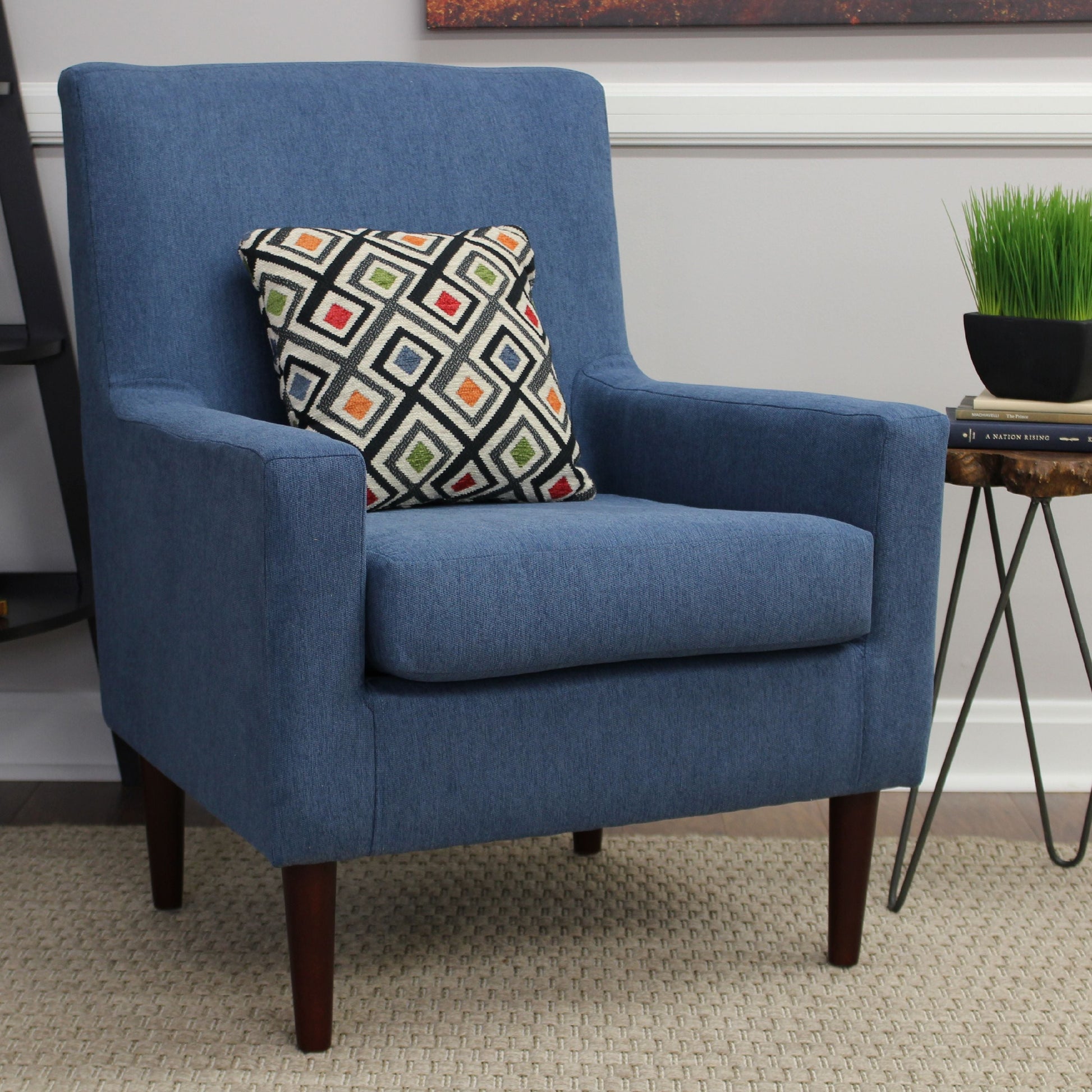 Modernize any room in your home or office space with this elegant Fox Hill Emma Lounge Chair. It's constructed of a sturdy wooden frame and includes a removable foam seat cushion covered with woven upholstery fabric. The track arm design gives this lightweight accent chair a distinctive look that blends in well with any decor. The wooden legs simply screw on for quick assembly, and the height of this comfortable chair makes it easy for you to vacuum underneath. It will quickly become your favorite place to sit and relax when you get home from work or want to get the baby to sleep. Use this lightweight lounge chair as a room anchor seating group in your living room or match it with a fun throw pillow. It comes in a wide variety of color options, so you're sure to find just the right fit and style. Fox Hill Emma Lounge Chair, Multiple Colors: