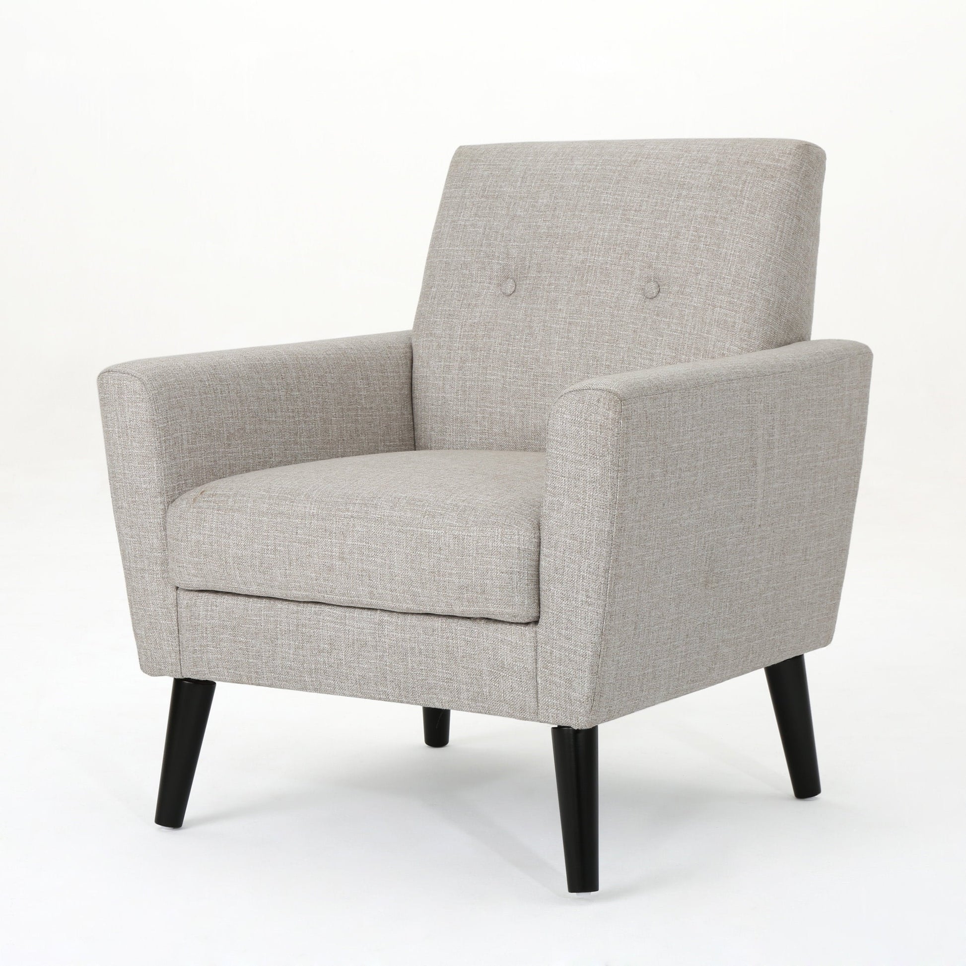 GDF Studio Teche Mid Century Modern Fabric Tufted Club Chair, Beige and Dark Brown: