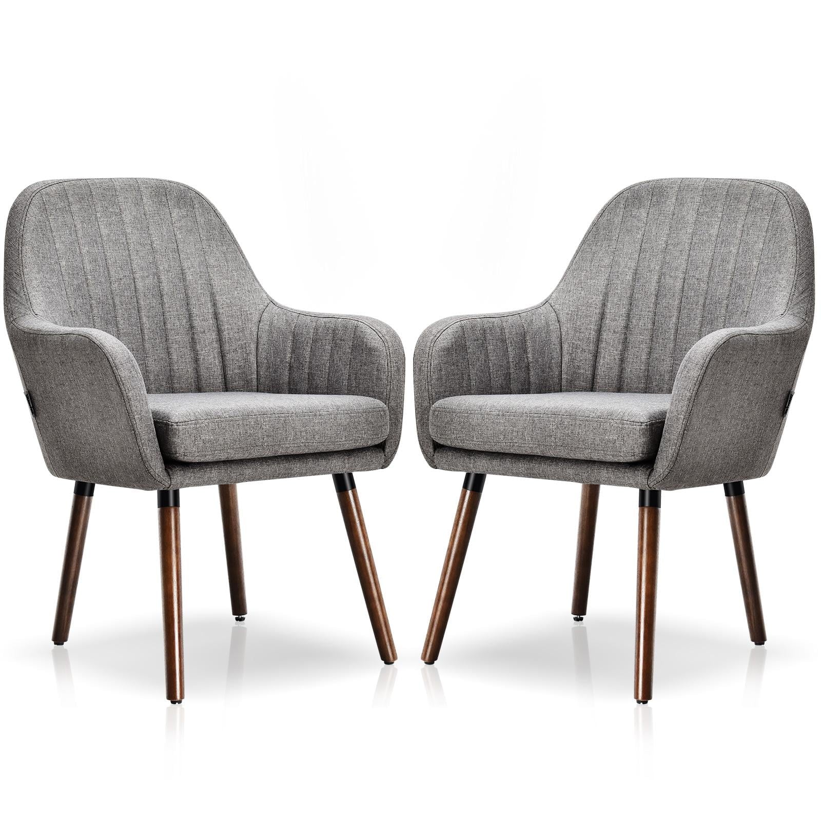 Giantex Fabric Dining Chairs, Leisure Upholstered Arm Chair w/Thick Sponge Seat, Padded Accent Chair for Home(Gray, 2)
