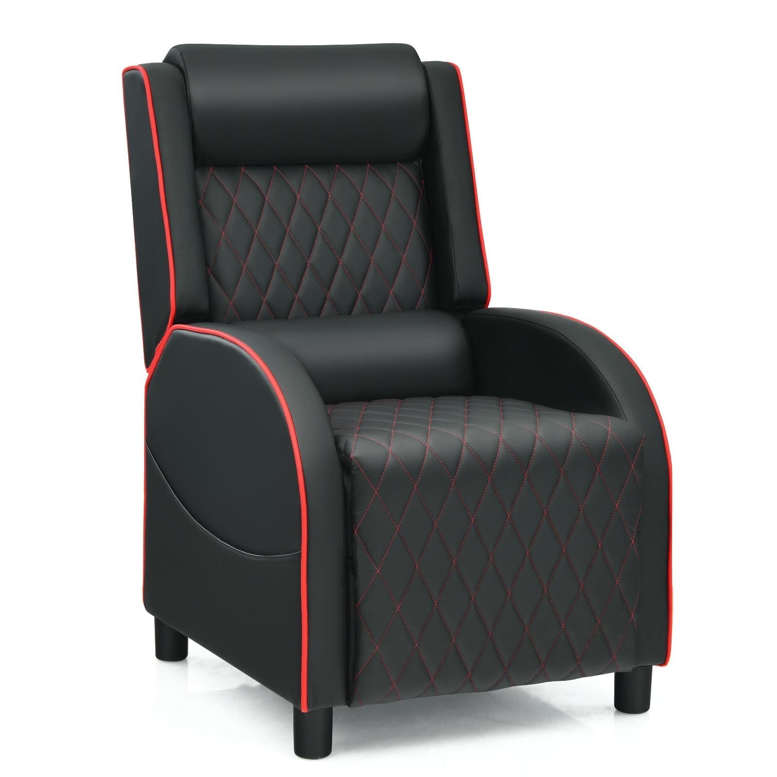 Giantex Massage Gaming Recliner Chair, PU Ergonomic Single Sofa w/Headrest, Lumbar Support, Racing Style, Reclining Home Theater Seating, Red