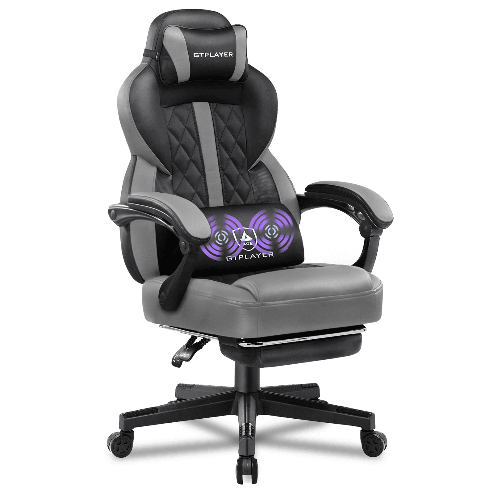 GTPLAYER Gaming Chair PU Leather Office Chair with Footrest&Massage Pillow, Gray