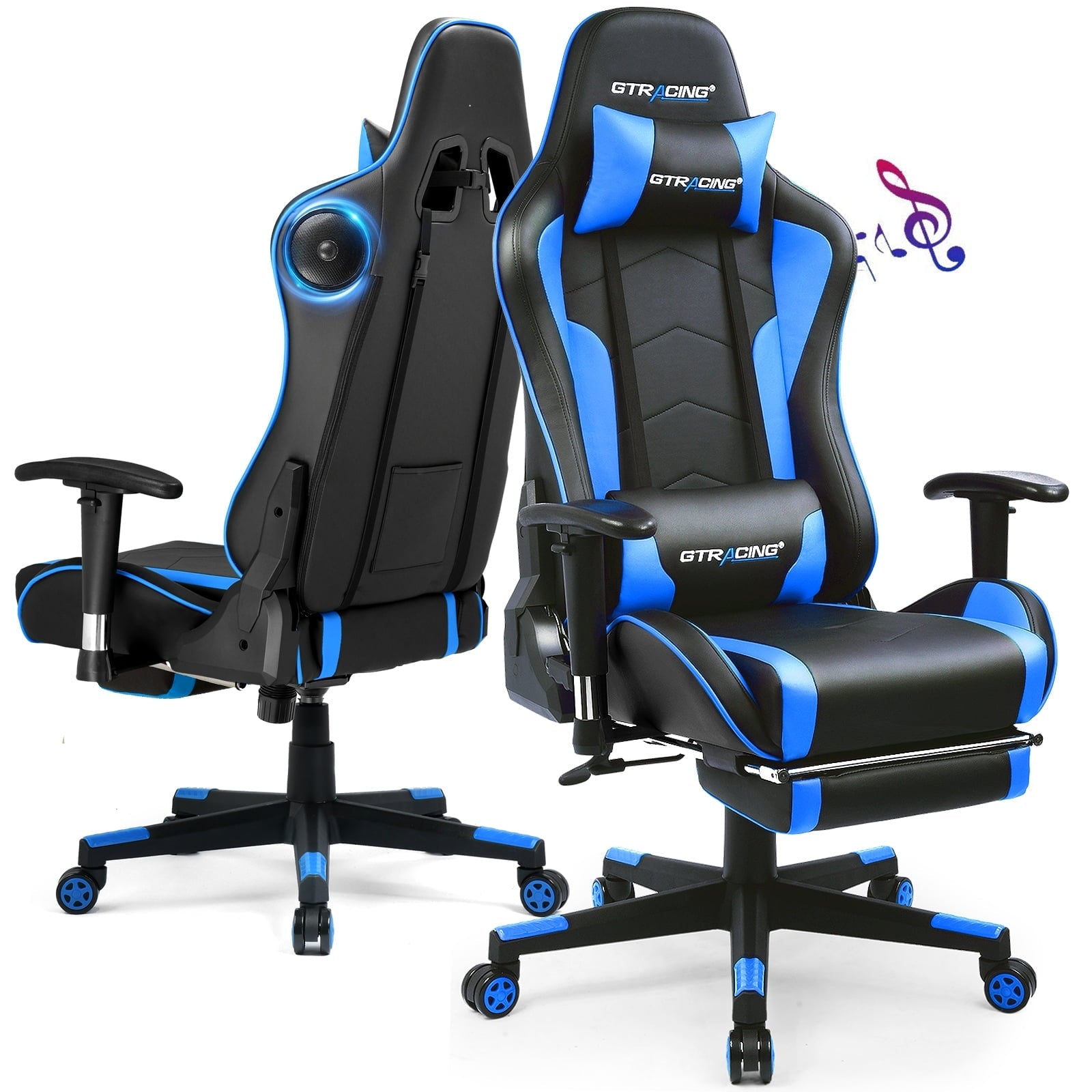 GTPLAYER Gaming Chair with Bluetooth Speakers Footrest PU Leather Music Office Chair, Blue