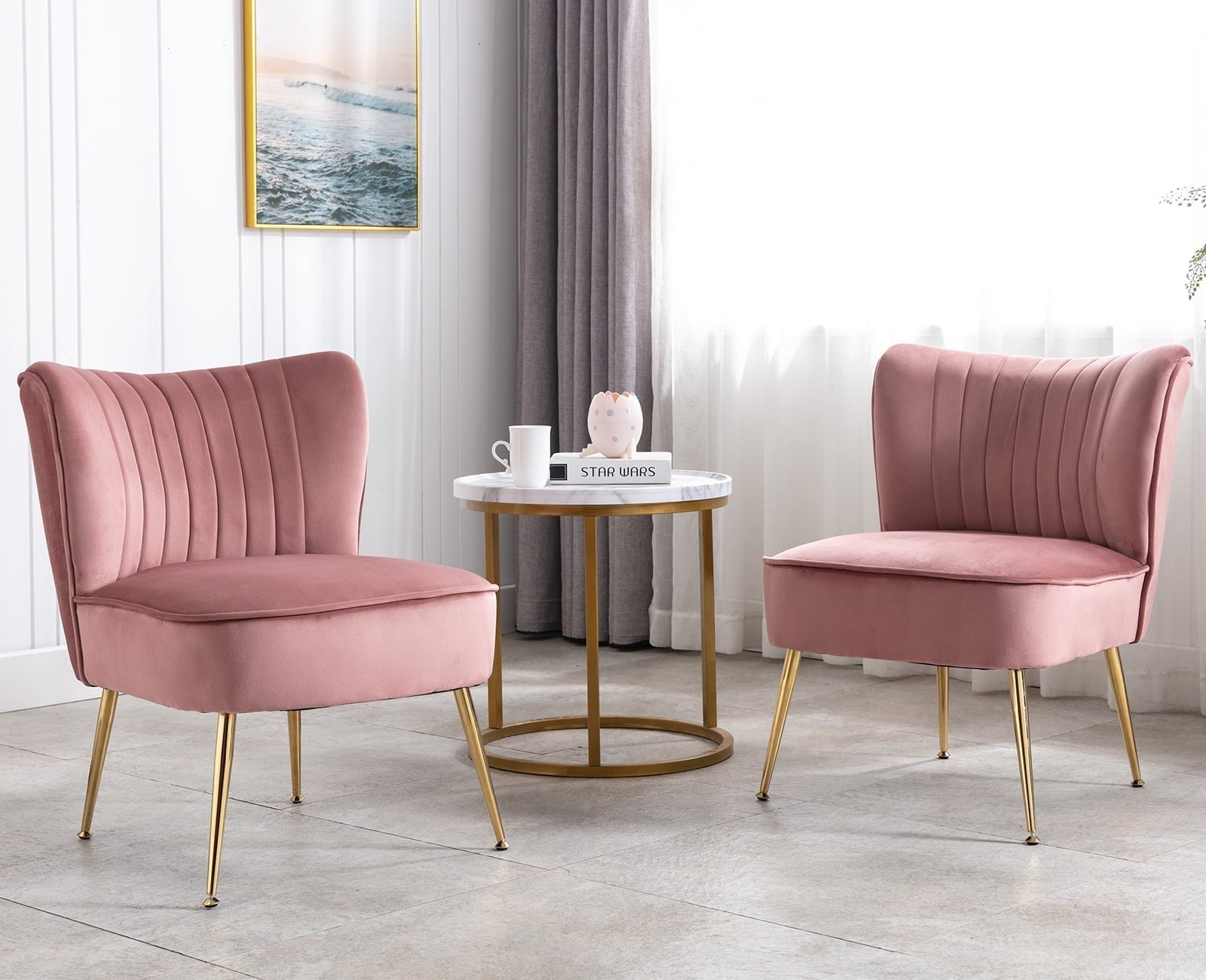Guyou Modern Accent Chair Set of 2, Armless Slipper Chair Velvet Upholstered Lounge Chair, Wingback Single Sofa Side Chair with Gold Legs for Living Room Bedroom, Pink