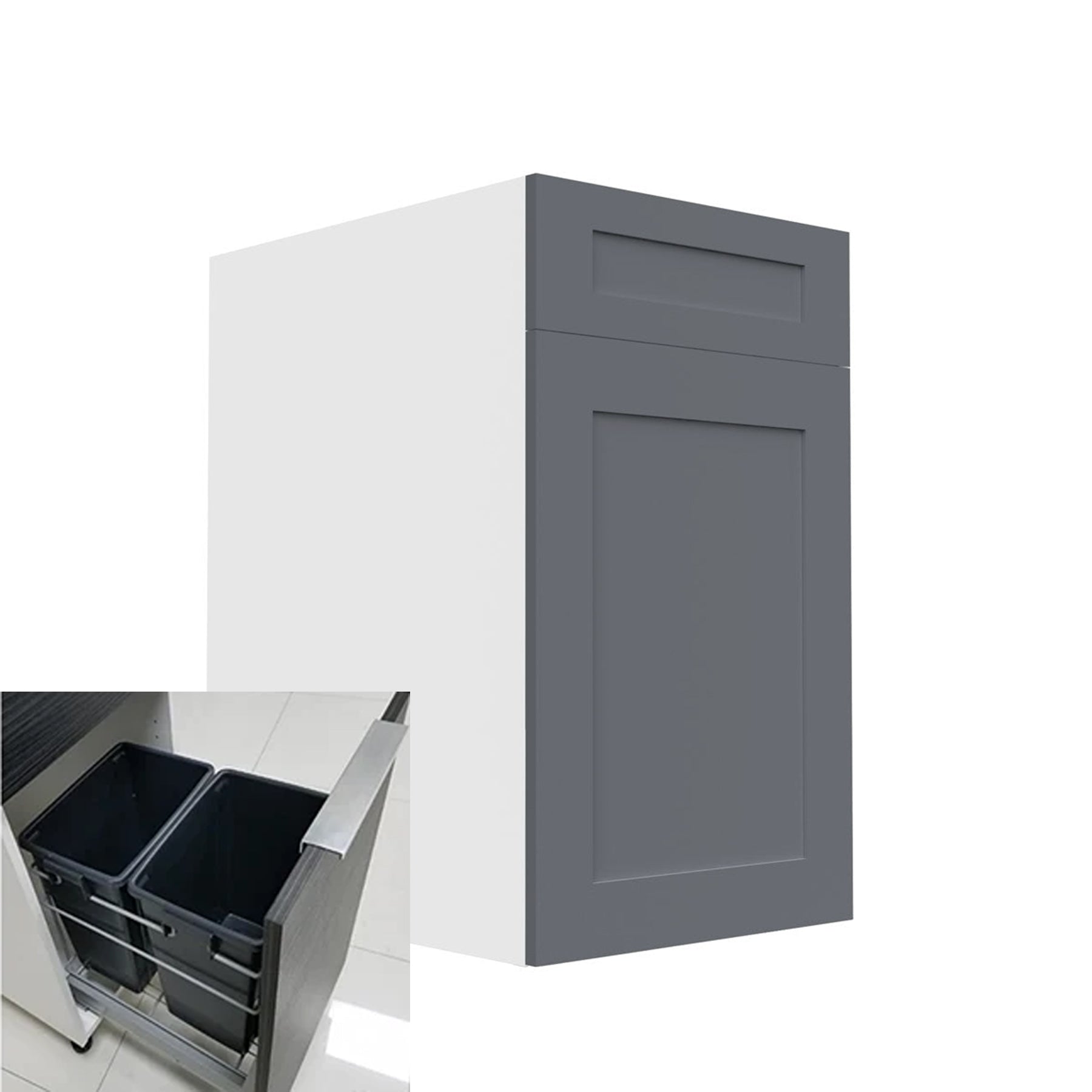 RTA - Grey Shaker - Single Door Waste Basket Cabinets | 18"W x 30"H x 23.8"D