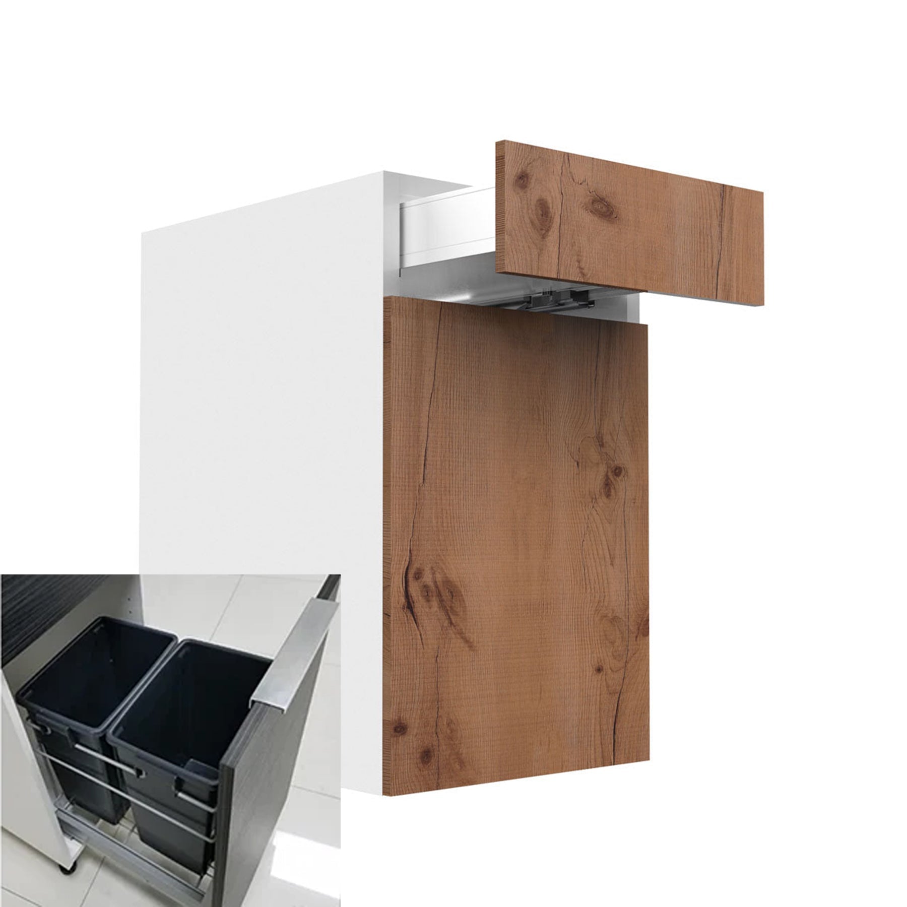RTA - Rustic Oak - Single Door Waste Basket Cabinets | 18"W x 34.5"H x 24"D