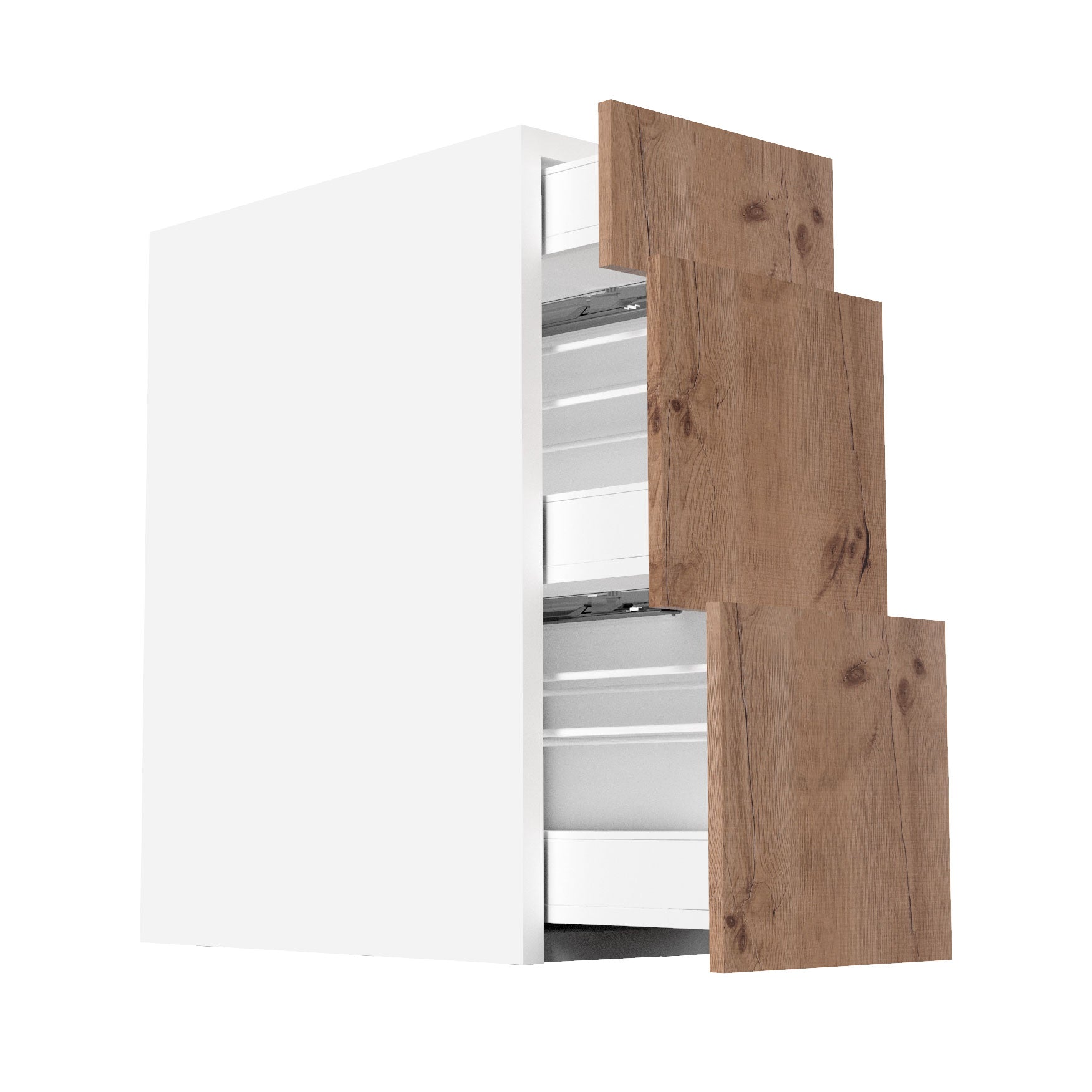 RTA - Rustic Oak - Three Drawer Vanity Cabinets | 12"W x 34.5"H x 21"D