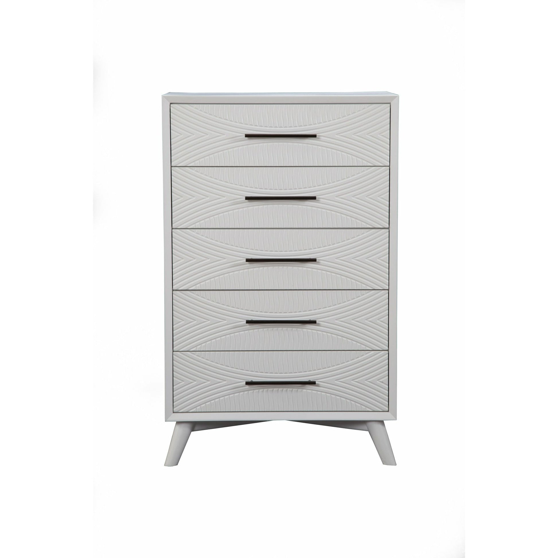 Classic White finish. Quality crafted with Mahogany Wood Solids & Veneer. Fully assembled. French & English Dovetail drawer construction. Felt lined top drawer(s). Ball bearing metal drawer glides. 5 drawers for storage. Alpine Furniture knows that certain things never go out of style. Their furniture products are designed and constructed with classic English and/or French dovetailing that provides a sturdy result and an unbeatable aesthetic. For over 20 years, Alpine has provided its customers with a variety of wood products for the bedroom, dining room, and living room. Each piece is designed to meet the highest-quality standards of design, durability, and dependability. Customer satisfaction is of the utmost importance to Alpine. They have altered their designs over the years based on customer input in order to attain excellence in all areas.