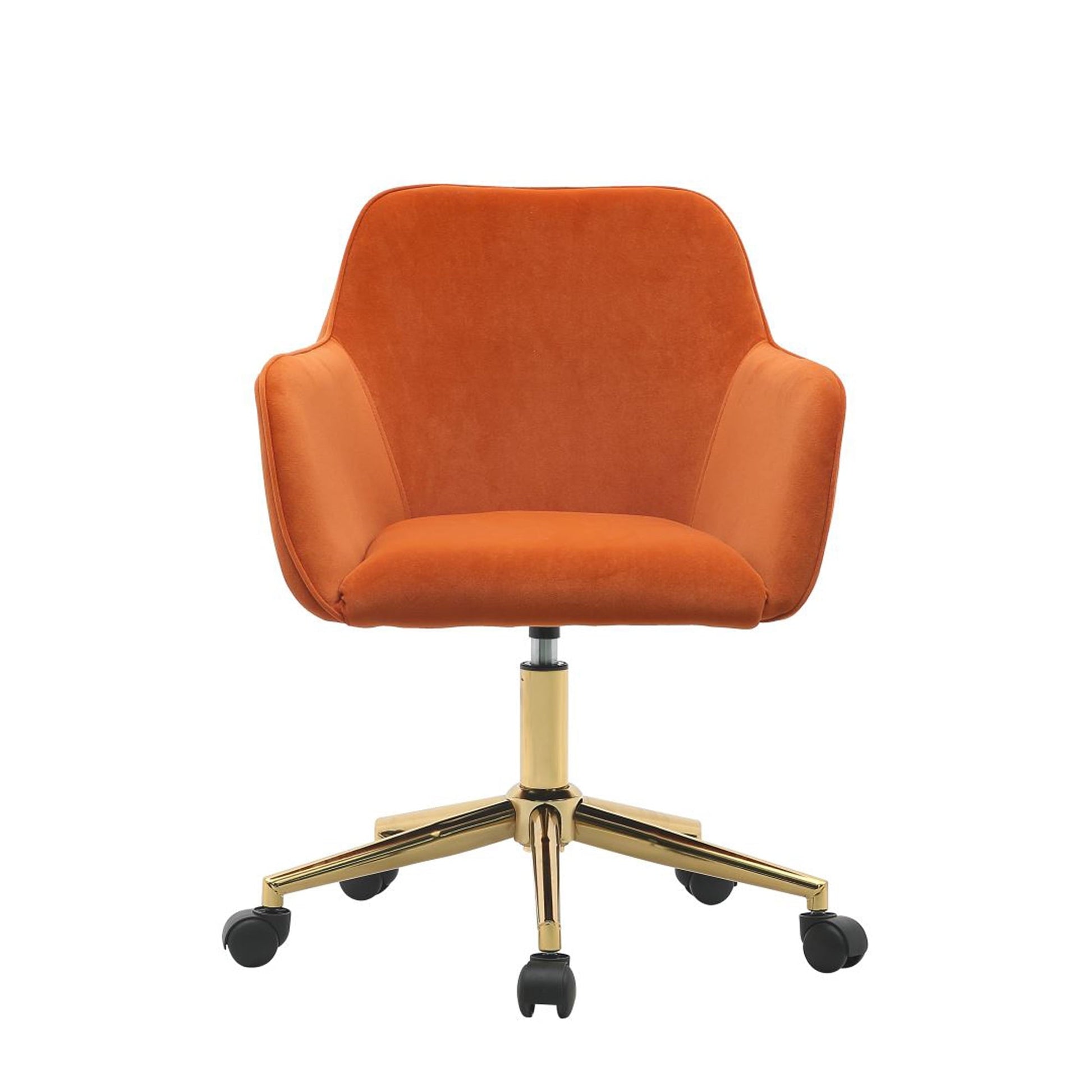 Velvet Fabric Vanity Chair for Makeup Room, Modern Accent Chair for Living Room, Height Adjustable Swivel Chair for Home Office, Comfy Upholstered Arm Chair with Back for Bedroom, Orange, D4443