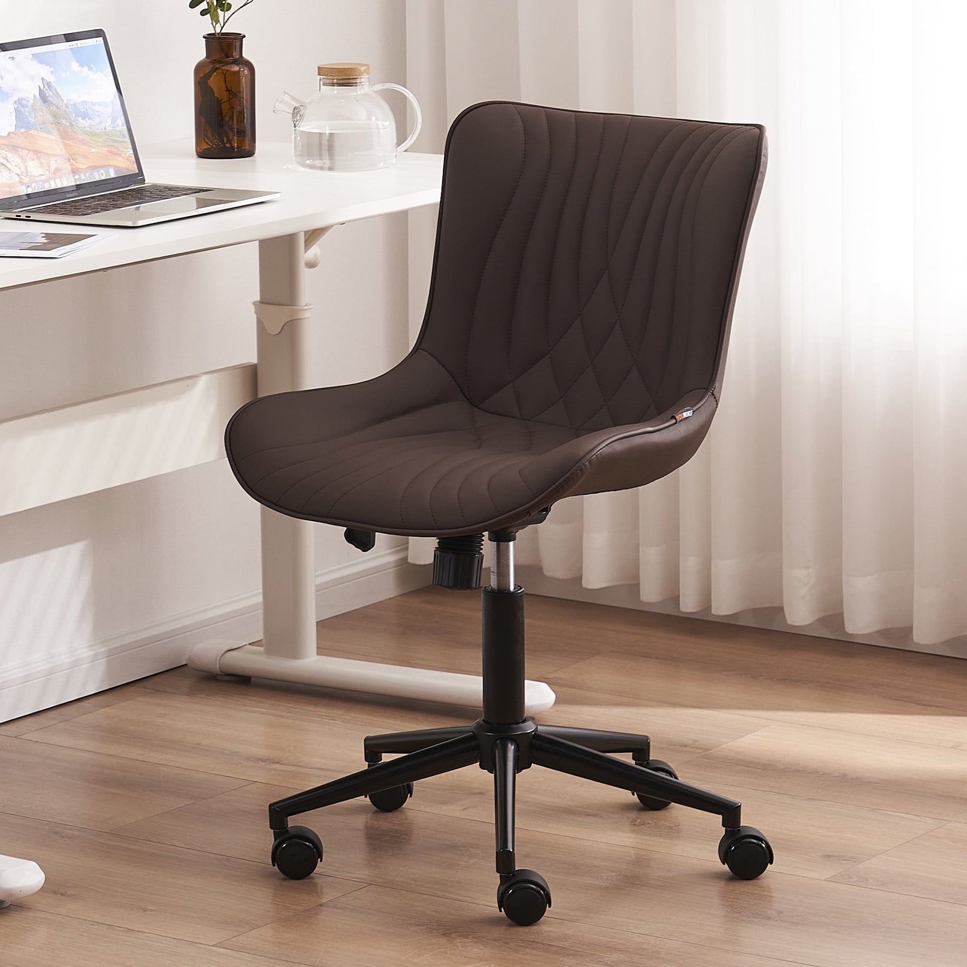YOUNIKE Modern Office Chair with Wheels Adjustable Ergonomic Desk Task Chair in Mid-Back Brown PU Design
