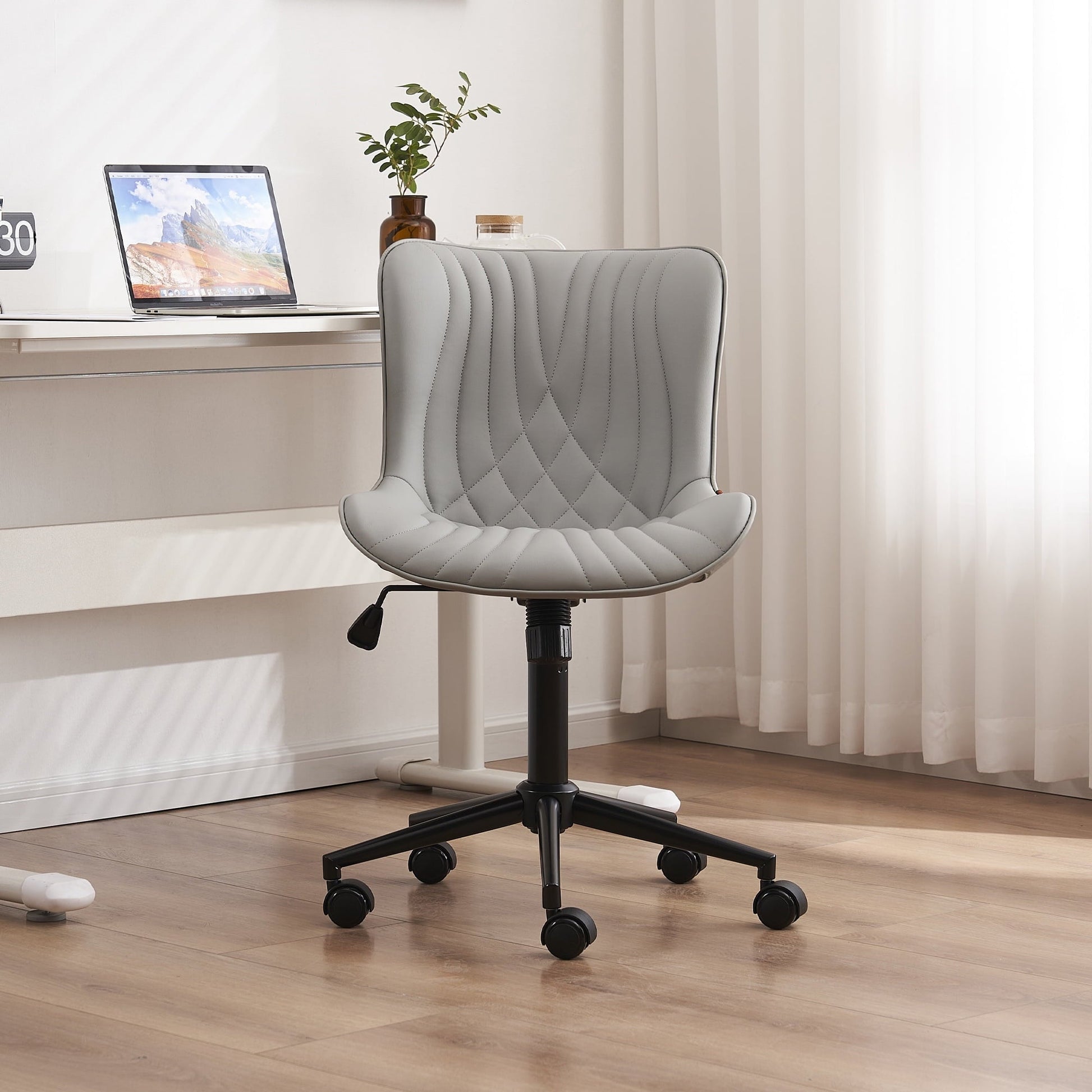 YOUNIKE Modern Office Chair with Wheels Adjustable Ergonomic Desk Task Chair in Mid-Back Gray PU Design